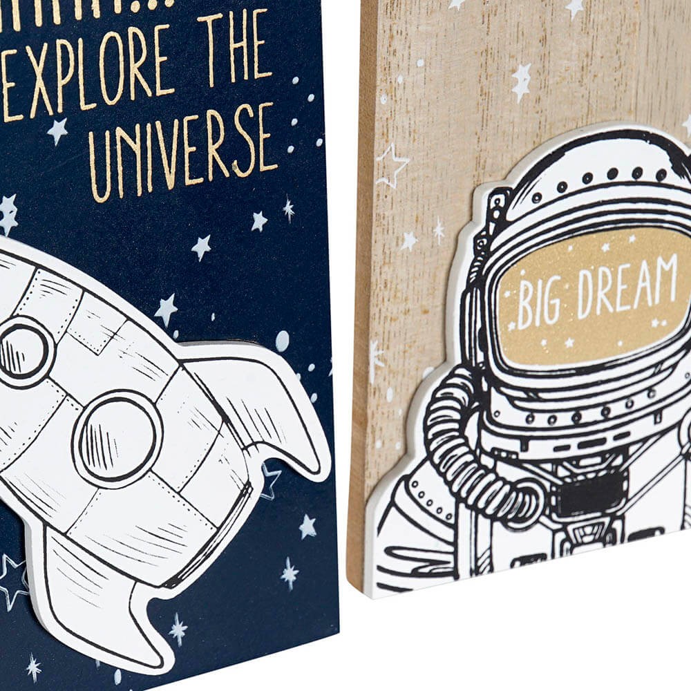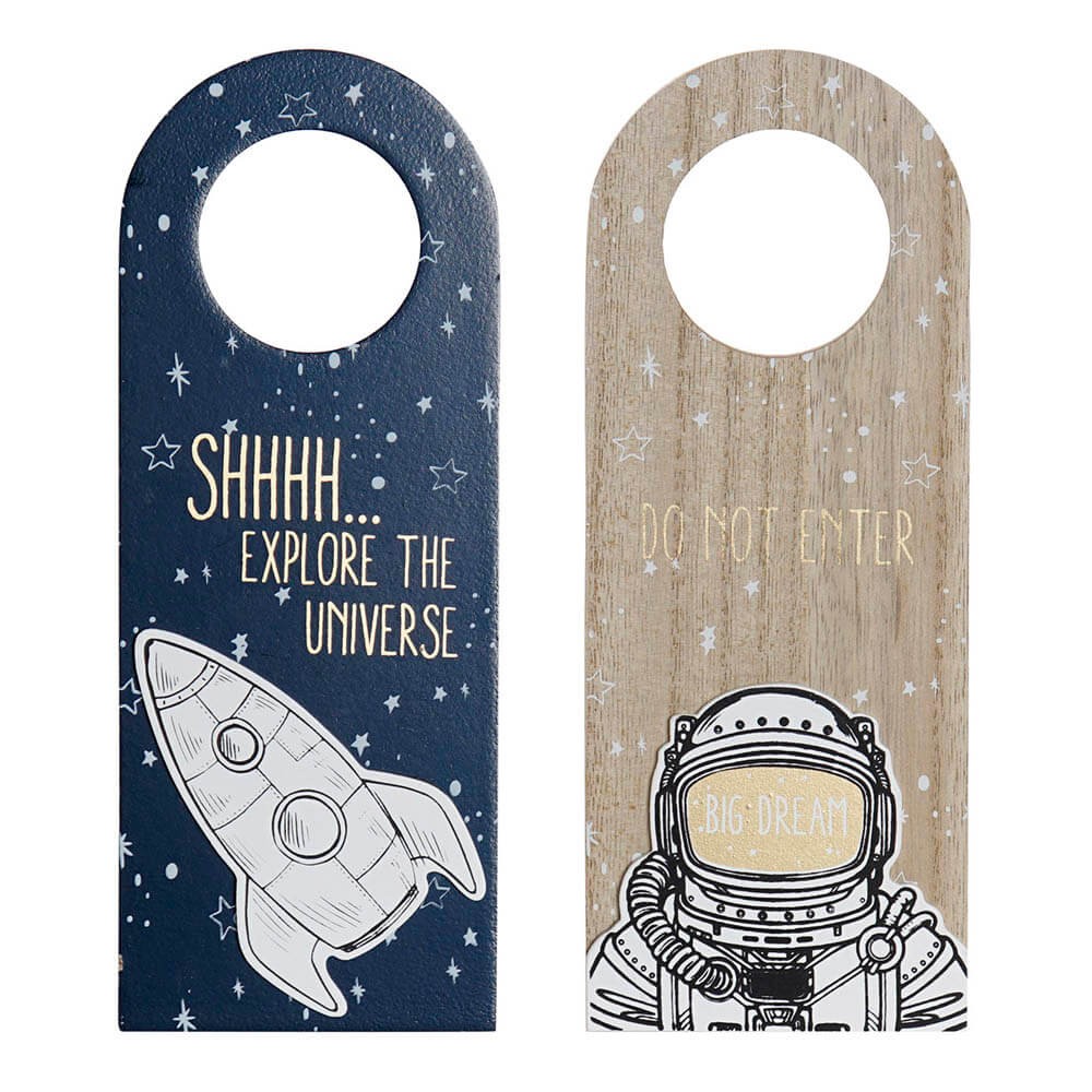 -Placa color natural decorada con un astronauta, estrellas y la frase DO NOT ENTER.