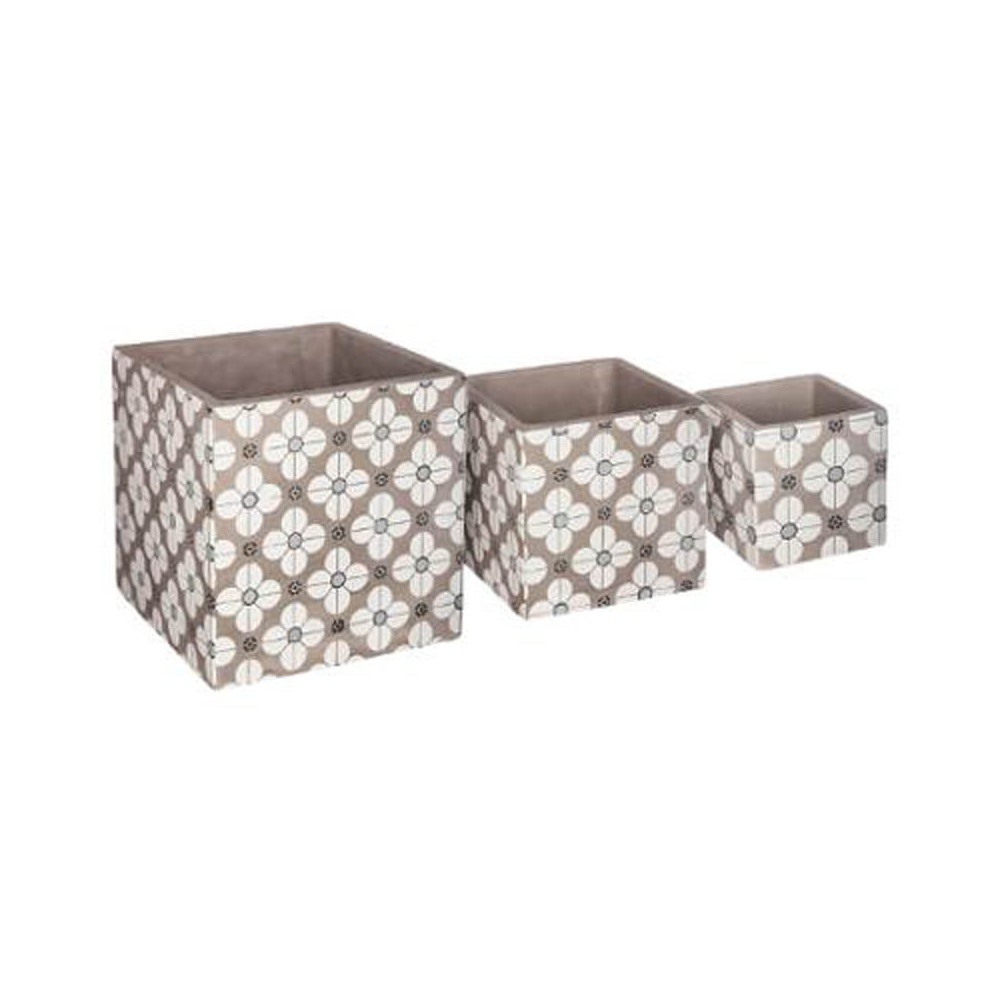 Macetero cuadrado diseño vintage realizado en cemento con un bonito patrón geométrico en tonos crema, perfecto para contener una planta y darle un aire nuevo. 2 modelos a elegir.