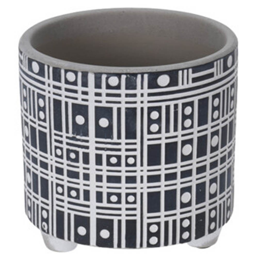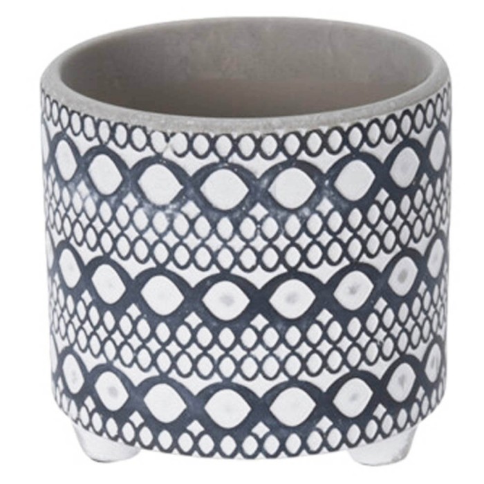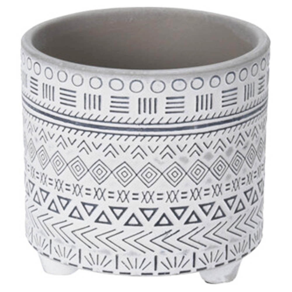 Maceta de cerámica en tonos grises con dibujos étnicos en relieve. 4 diseños según disponibilidad.
