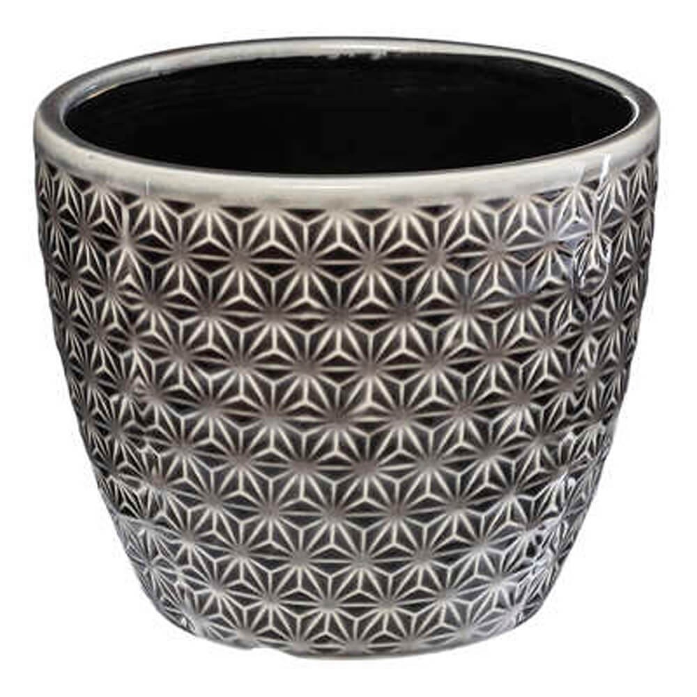 Maceta fabricada en cerámica esmaltada de color gris, azul, verde, blanco o marrón con un bonito diseño en relieve, floral o geométrico, perfecta para contener una planta y darle un aire nuevo.