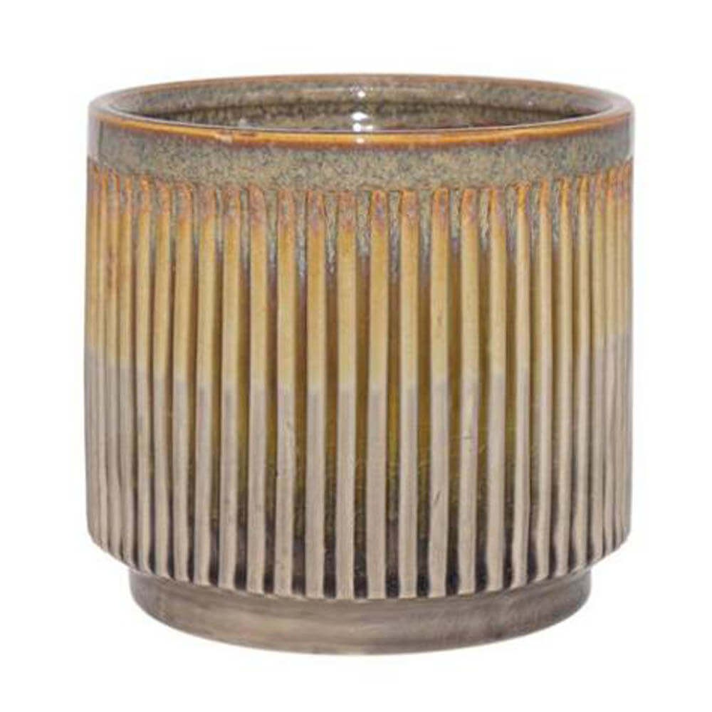 Macetero decorativo realizado en cerámica gres esmaltada con un elegante diseño acanalado, perfecto para contener, embellecer y dar un aire nuevo a las plantas y flores.