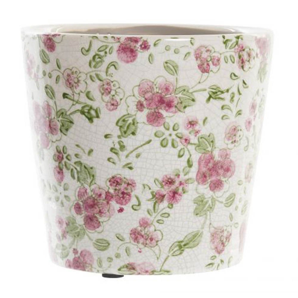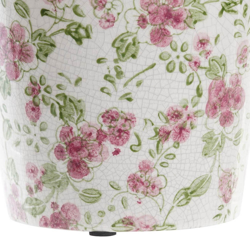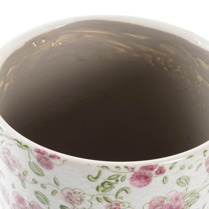 Macetero decorativo realizado en cerámica gres acabado craquelado con un bonito diseño floral de estilo country chic en formato cónico, perfecto para contener, embellecer y dar un aire nuevo a una planta.