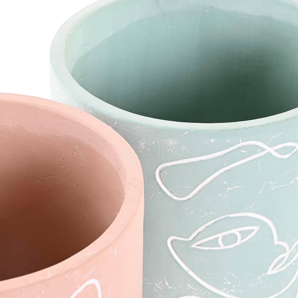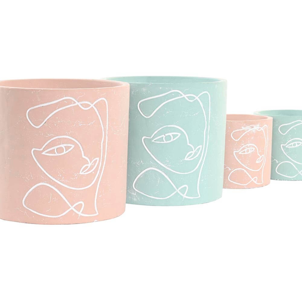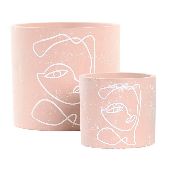 Si buscas un macetero decorativo para embellecer la maceta de una planta y darle un aire nuevo utiliza este macetero redondo con un diseño ideal realizado en cemento, disponible en color rosa o verde con la superficie tallada con líneas finas formando la silueta de una cara de mujer que aportara un toque romántico y especial al lugar donde la ubiques.