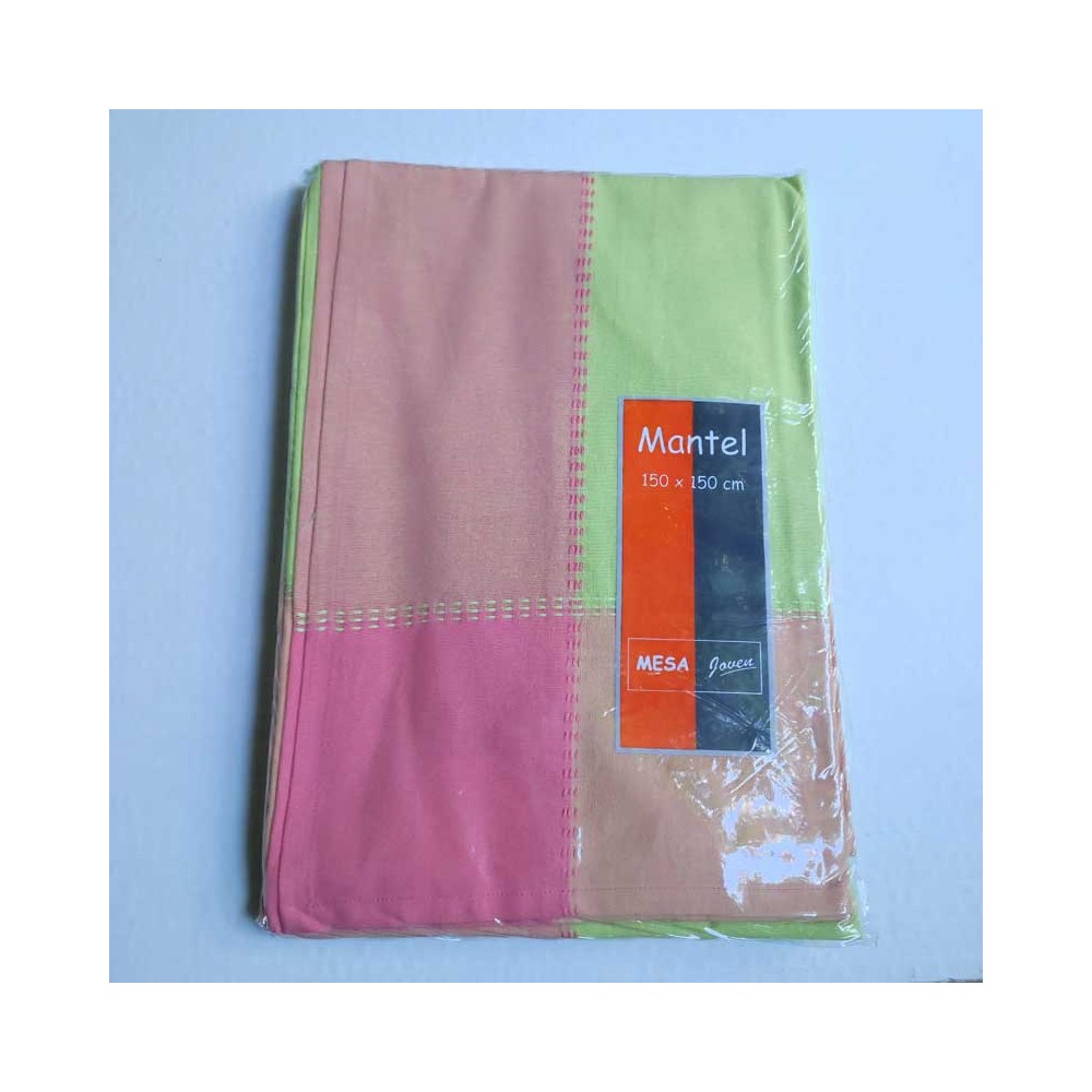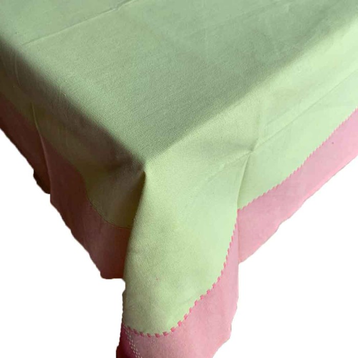 Mantel Verde pistacho con franja en color rosa 150x150cm 100% Algodón