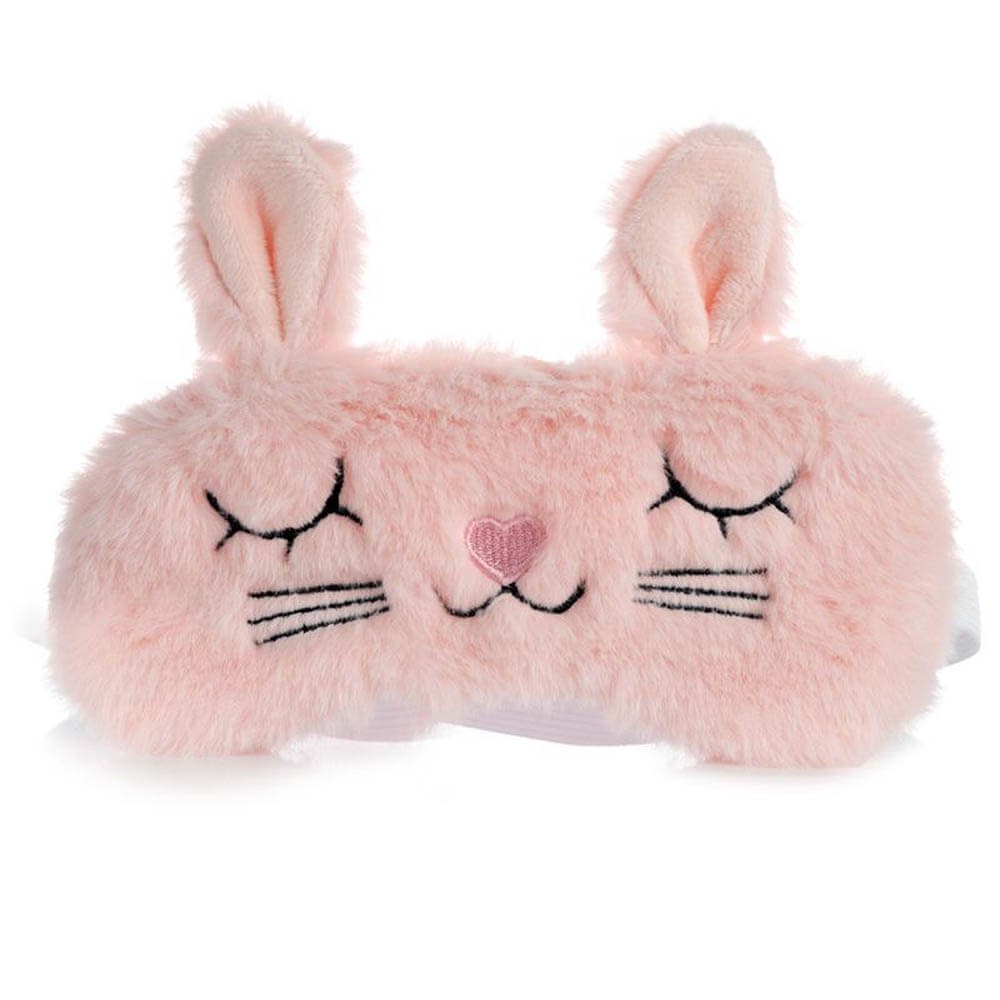 Antifaz para dormir diseño conejo en color rosa con goma elástica para un ajuste perfecto y evitar que se mueva mientras duermes, ideado para conciliar el sueño evitando la luz del día.