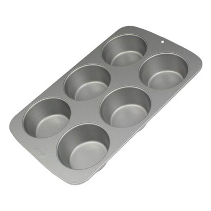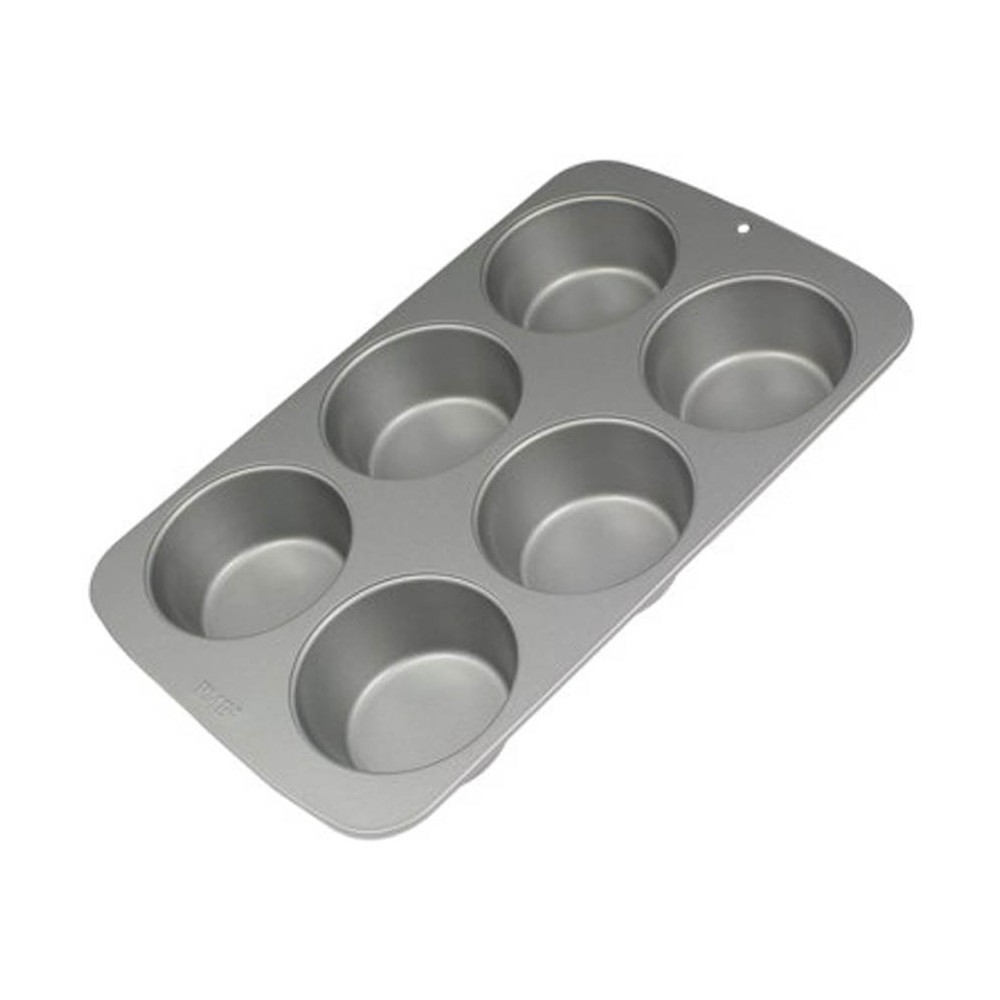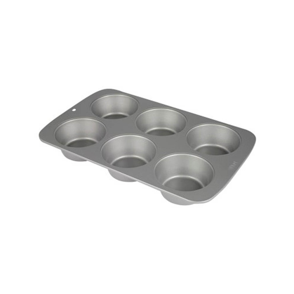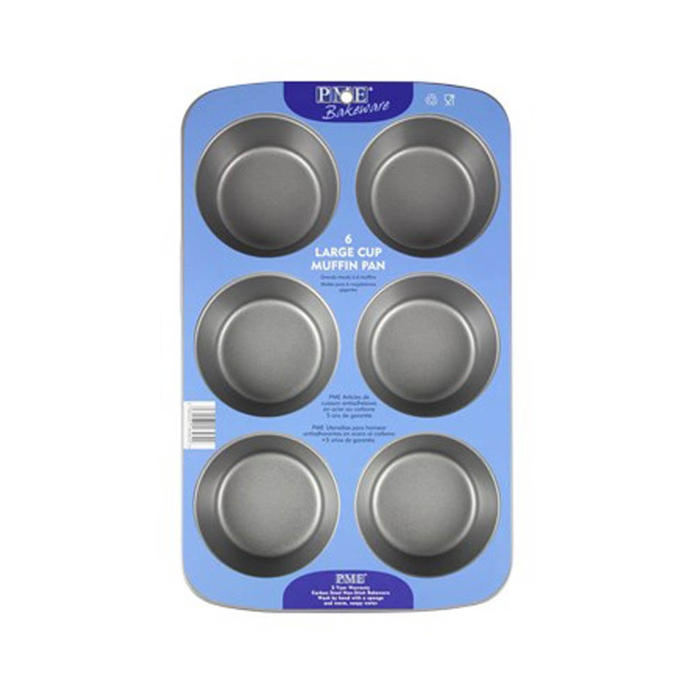 Molde para muffins antiadherente de la prestigiosa marca PME, fabricado en acero al carbono de primera calidad, asegurando una distribución uniforme del calor y por ende un horneado perfecto. Hornea hasta 6 muffins de Ø 92 mm x 40 mm con fácil desmoldado y limpieza. 31,3 x 21,7 x 4 cm.