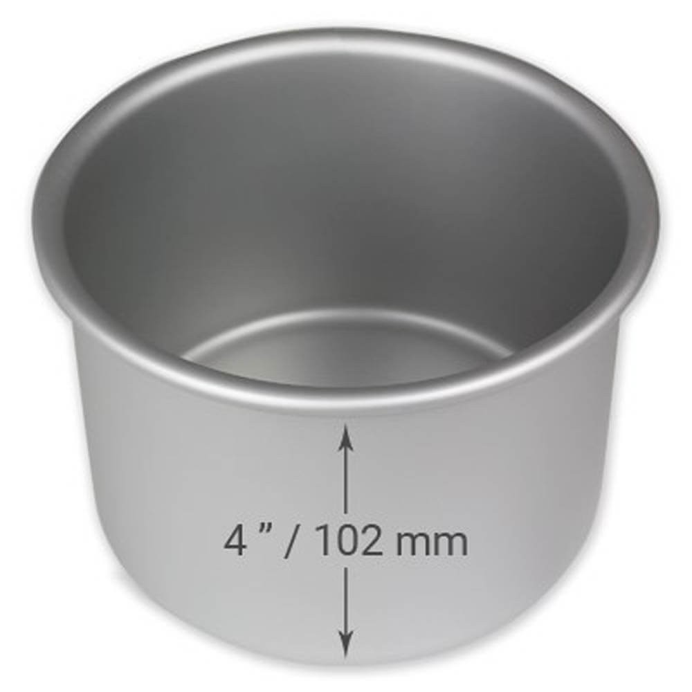 Molde para tartas de la marca PME de 10 cm de diámetro, realizado de una forma resistente y duradera en aluminio anodizado no reactivo, sin puntos de soldadura y con un grosor de pared uniforme para obtener un pastel con borde recto liso.