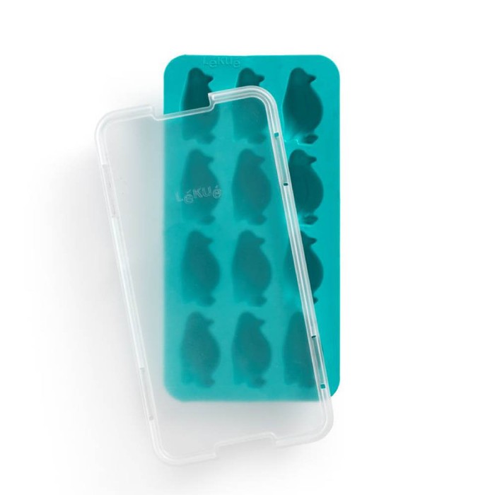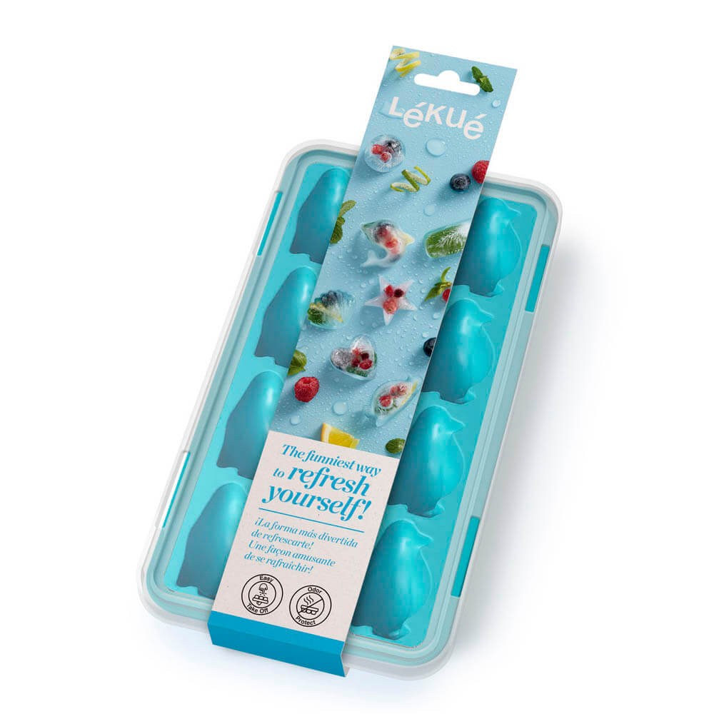 Bandeja para hielos con tapa de la marca Lékué con la que podrás elaborar divertidos hielos en forma de pingüino, perfectos para dar un toque original a las bebidas y sorprender a los invitados.