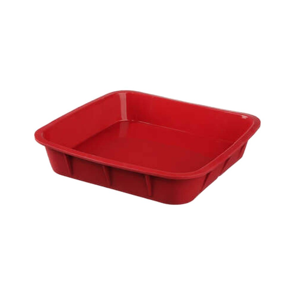 Molde de silicona cuadrado con asas y paredes reforzadas, ideal para realizar brownies.