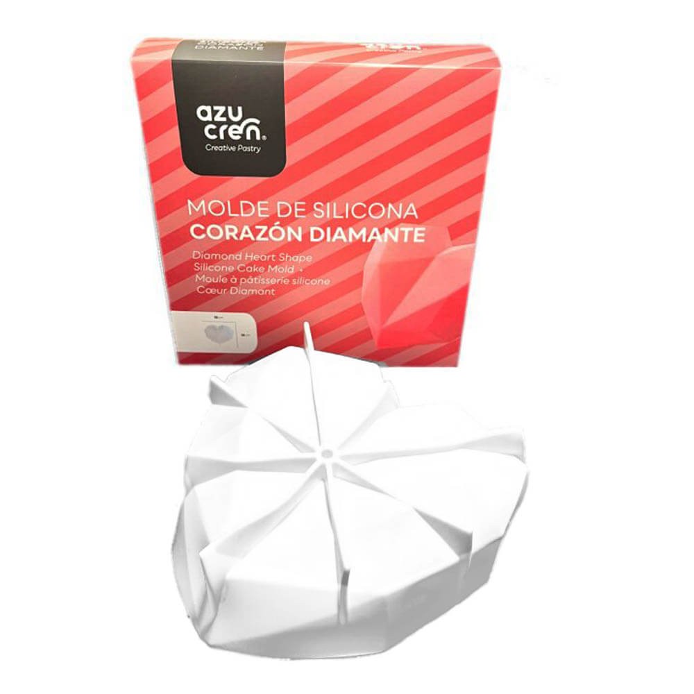 Molde corazón 3D diseño diamante realizado en silicona de grado alimenticio.