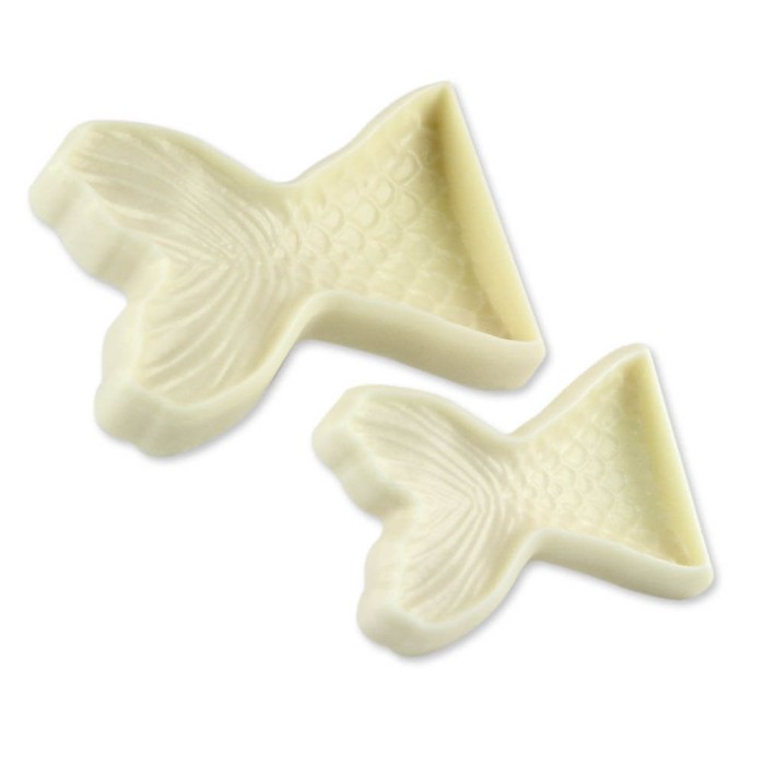 - Juego de dos moldes en forma de cola de sirena: tamaños 5,4 x 3,9 cm y 4 x 2,6 cm.