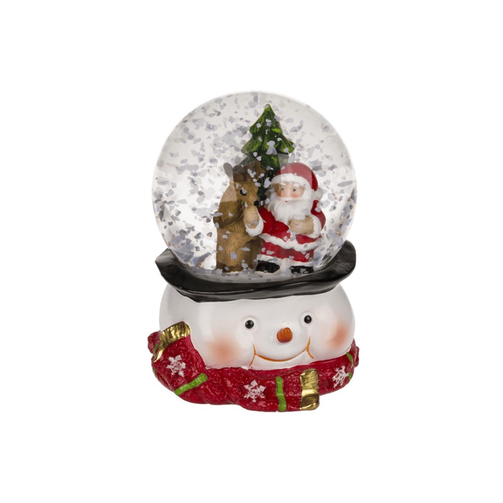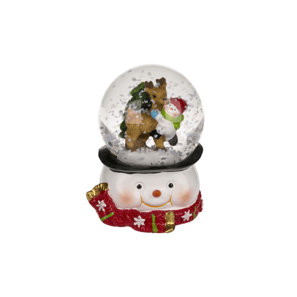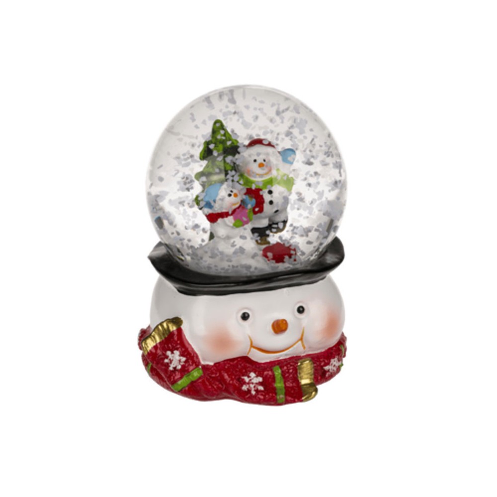 Crea un ambiente mágico esta Navidad con esta encantadora bola de nieve con muñeco de nieve. Fabricada en poliresina de alta calidad, destaca por su diseño alegre y lleno de detalles: un muñeco de nieve sonriente con bufanda roja sostiene una bola transparente que, al agitarla, deja caer una nevada brillante.