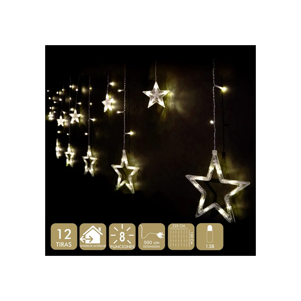 CORTINA ESTRELLAS 138 LEDS CÁLIDO 220 X 100 CM