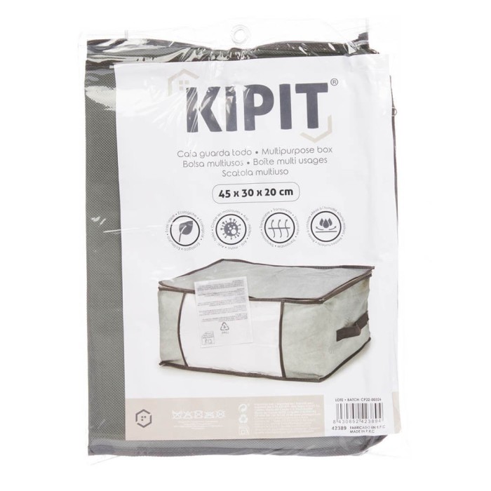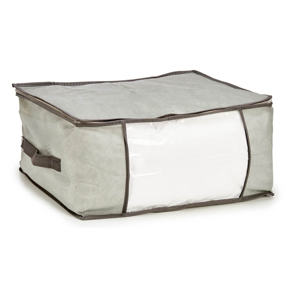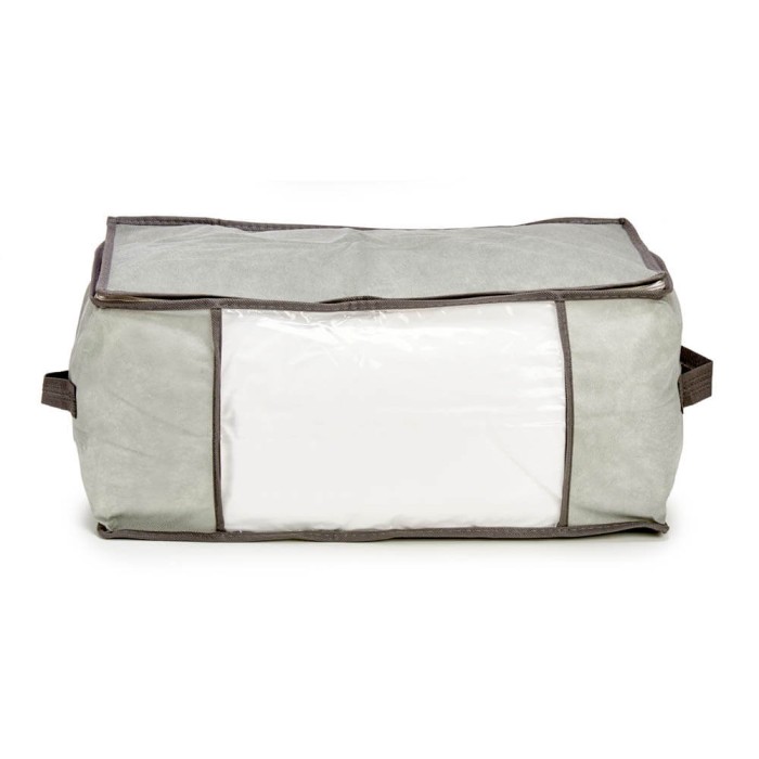 Organizador de armarios con cierre de cremallera y ventana de PVC. Ideal para guardar ropa, mantas y más. Asas prácticas para un fácil traslado. Medidas: 45x30x20cm