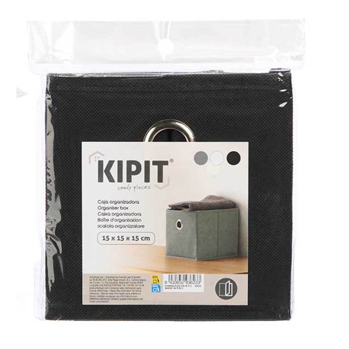 Organiza tus espacios con la caja organizadora plegable de 15x15x15 cm. Fabricada en cartón recubierto de TNT, disponible en blanco, gris o negro. Ligera y fácil de transportar, ideal para armarios y estanterías.