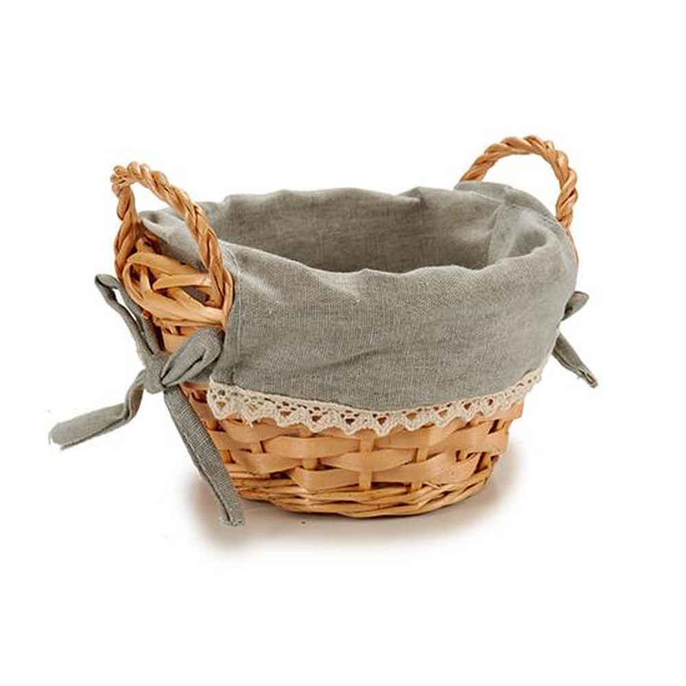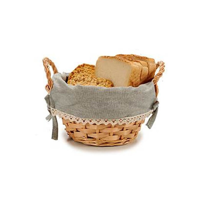 Panera de mimbre con asas en color natural, muy práctica para llevar el pan a la mesa. La panera de estilo rústico dispone de forro de tela acabado con puntilla blanca. El forro se puede quitar para lavar cómodamente.