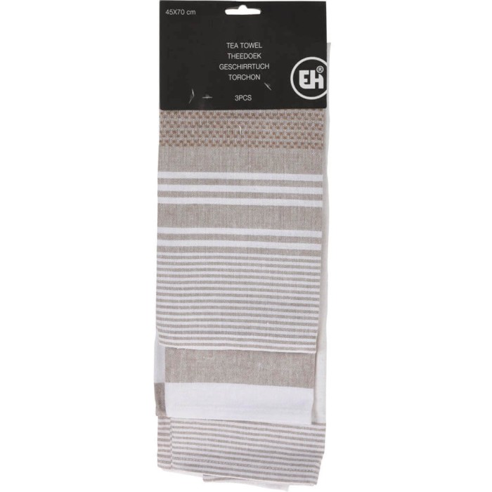 3 paños de cocina diseño rayas confeccionados en tejido de algodón.