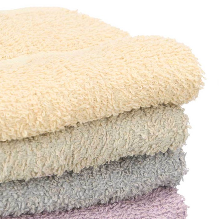 Paño de cocina de rizo de algodón de 400gr, ideal para secar manos y utensilios. Disponible en cinco colores pastel: beige, amarillo, gris, rosa o lila. Medidas: 50 x 50 cm.