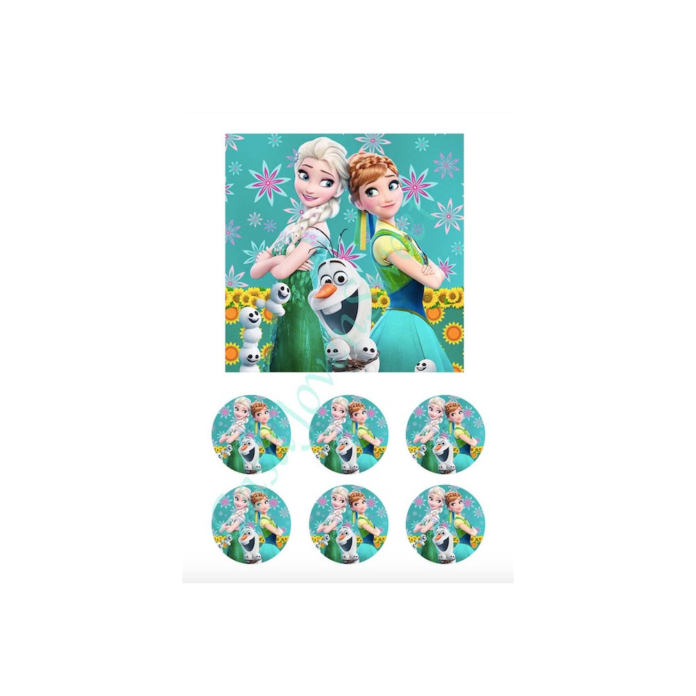 IMPRESIÓN PAPEL DE AZUCAR FROZEN FEVER 5CM REDONDA+15CM CUADRADA
