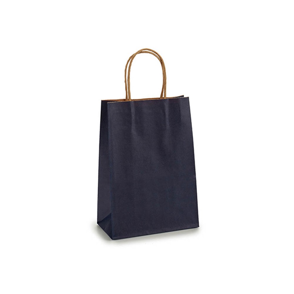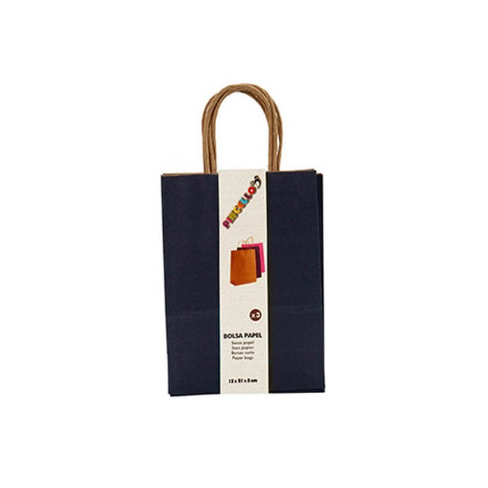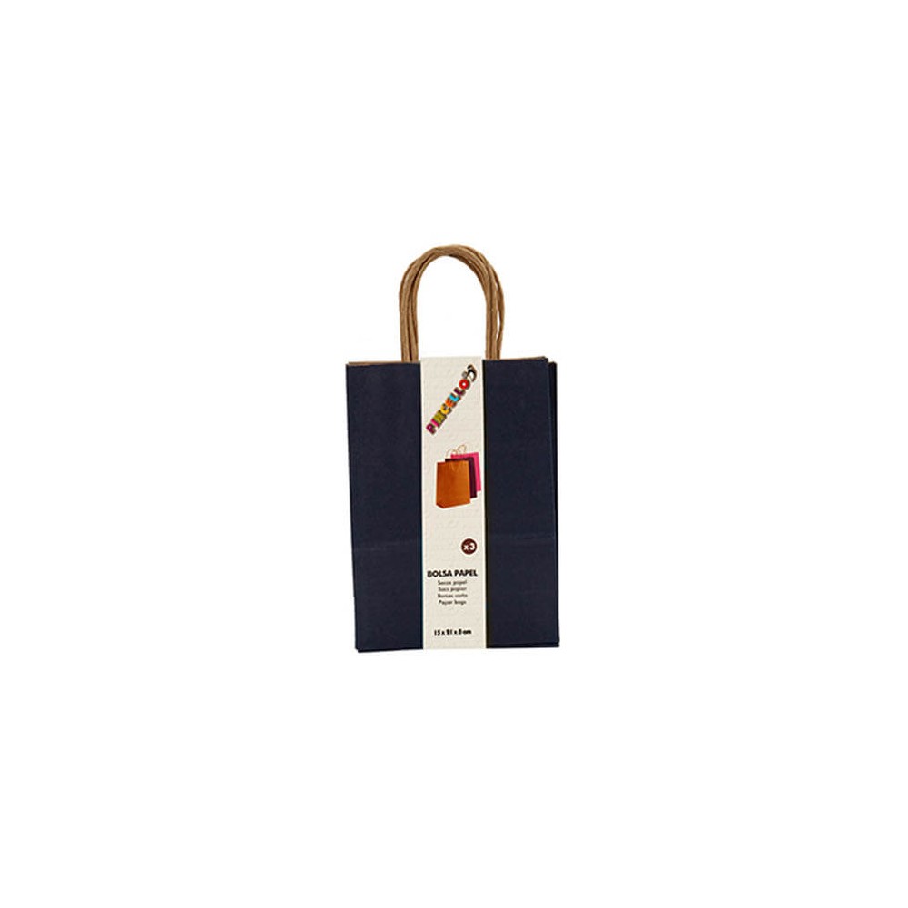 Set de 3 bolsas para regalo con un diseño básico en color liso realizadas en papel de color azul con el interior y el asa en papel kraft.