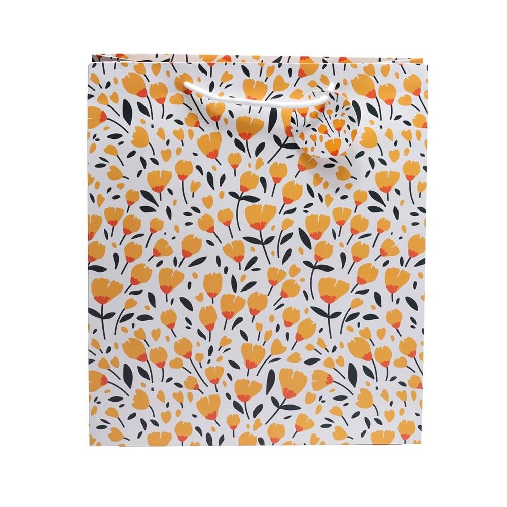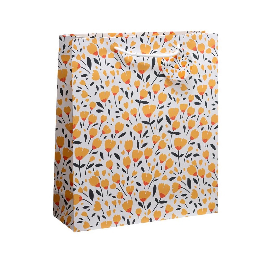 Bolsa de Regalo extra grande diseño amapolas amarillas, fabricada en papel con asas de nylon.