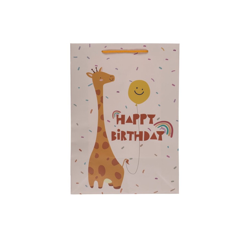 Nuestra bolsa de regalo esta disponible en 4 decorados, jirafa, oso, elefante o cocodrilo, con divertidas y alegres ilustraciones que deleitarán a los más pequeños. Cada detalle está cuidadosamente elaborado para añadir una dosis de diversión y alegría al regalo.