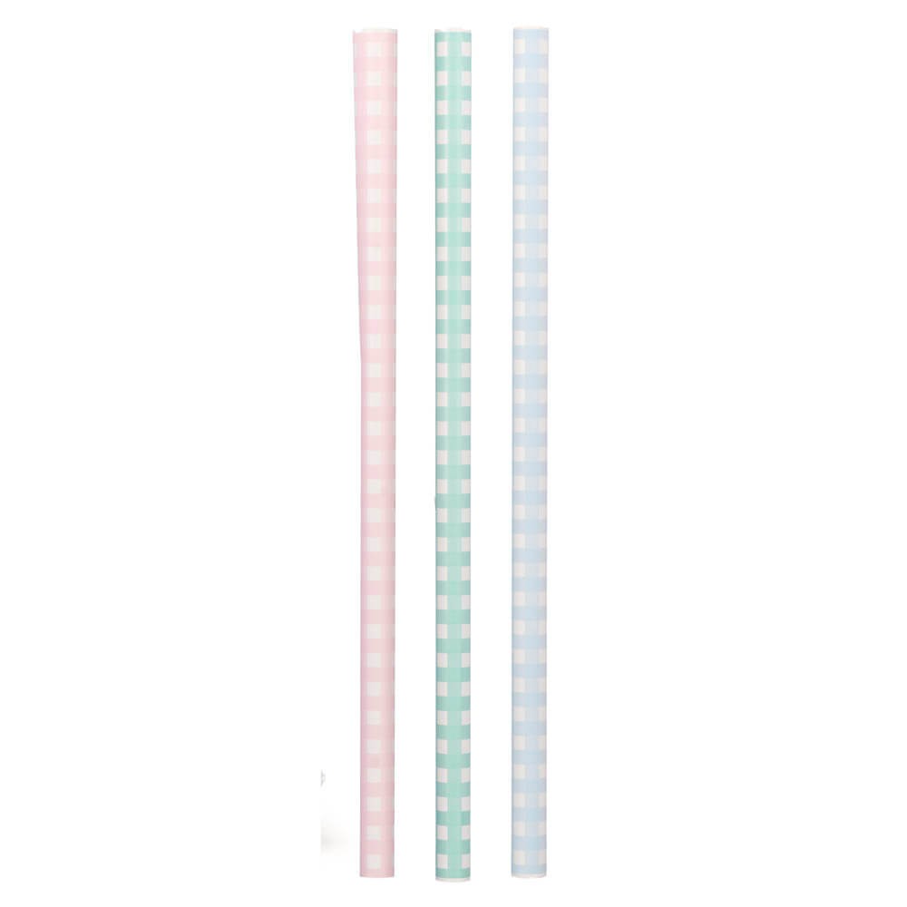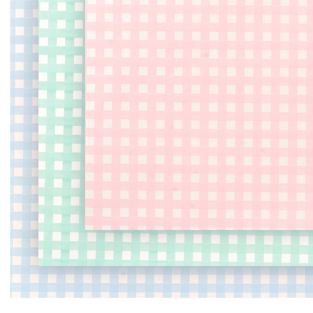 Rollo de papel de regalo diseño vichy en rosa, azul o verde. Perfecto para envolver tus regalos con estilo. Medidas: 70x200 cm.