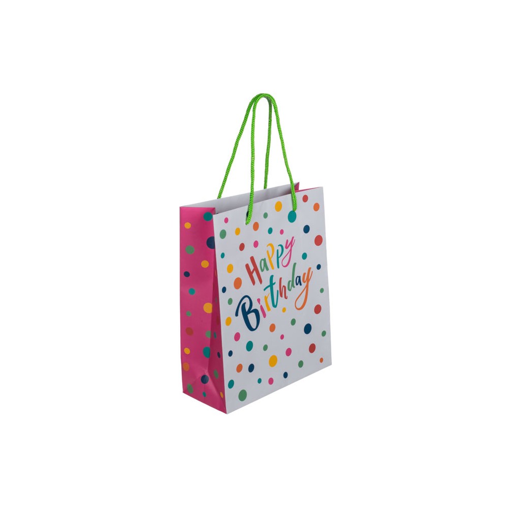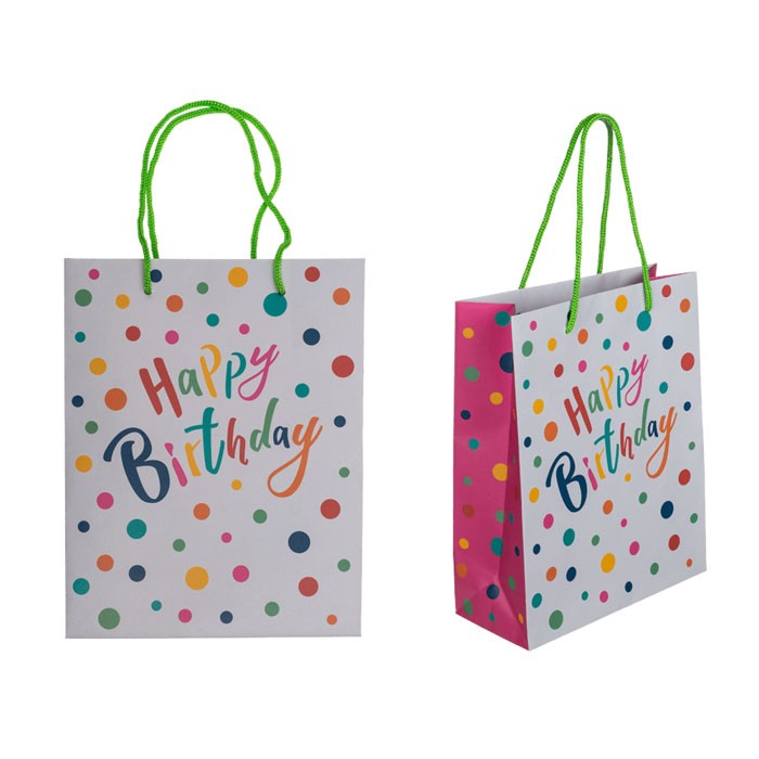 BOLSA PAPEL GRIS FELIZ CUMPLEAÑOS 18X8X23CM