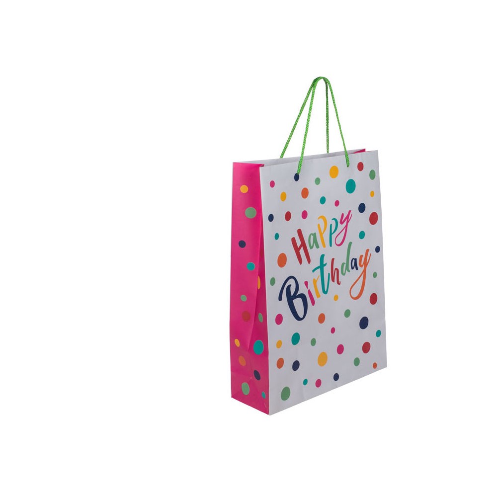 BOLSA PAPEL FELIZ CUMPLEAÑOS GRIS 25X8.5X34CM