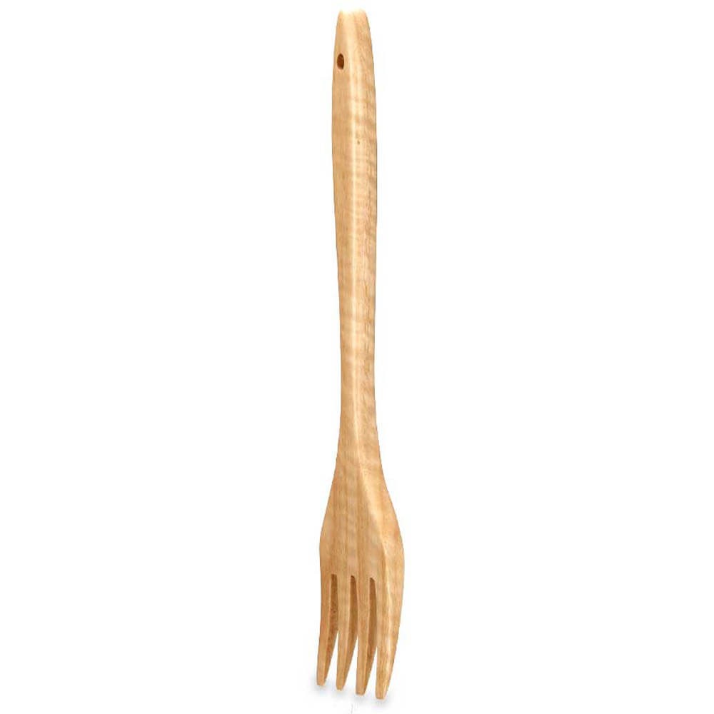 Tenedor de cocina en madera de castaño, ideal para remover y servir alimentos. Protege ollas antiadherentes. Práctico y ecológico.