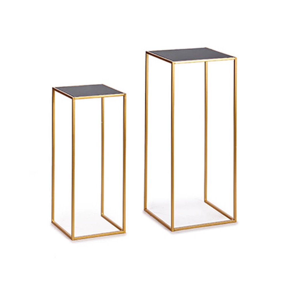 Conjunto de dos pedestales para plantas de diferente tamaño con base cuadrada, superficie de cristal negro y estructura metálica dorada, perfecto como complemento de decoración para combinar con plantas y dar un toque natural a la estancia. Los tonos metalizados están en tendencia, aportan sofisticación y elegancia.