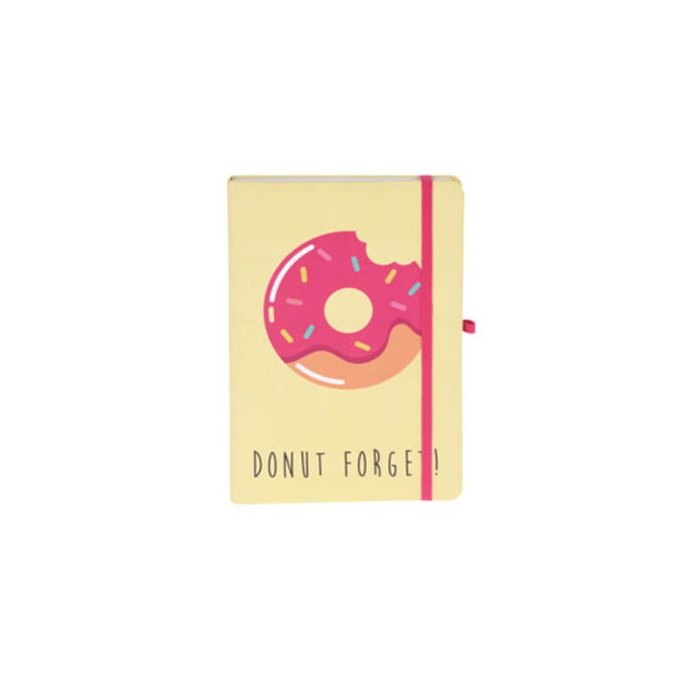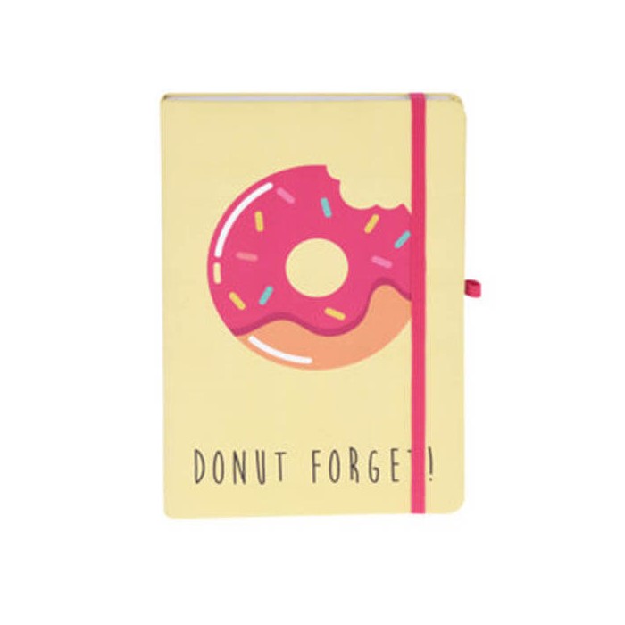 Libreta A5 con cierre elástico y tapas decoradas con diferentes diseños, Donuts, Leopardo, Mapa mundi, etc.