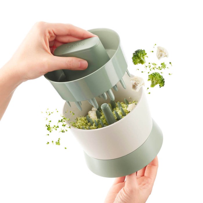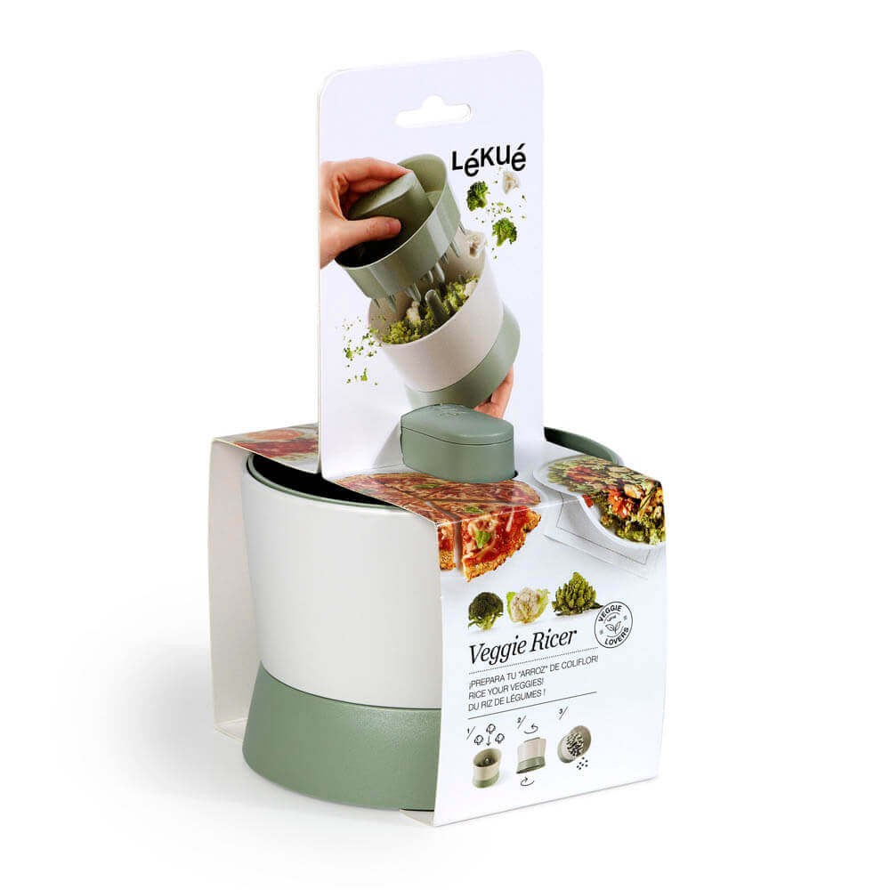 Veggie Ricer de la marca Lekue para convertir la coliflor o el brócoli en una alternativa al arroz. Muy fácil, seguro y divertido de usar, transforma los vegetales y añade más verdura a tus platos. Puedes triturar el brocoli o la coliflor hasta obtener un tamaño similar al del arroz, es perfecto para dietas sin gluten o bajas en carbohidratos. Permite elaborar gran variedad de recetas!