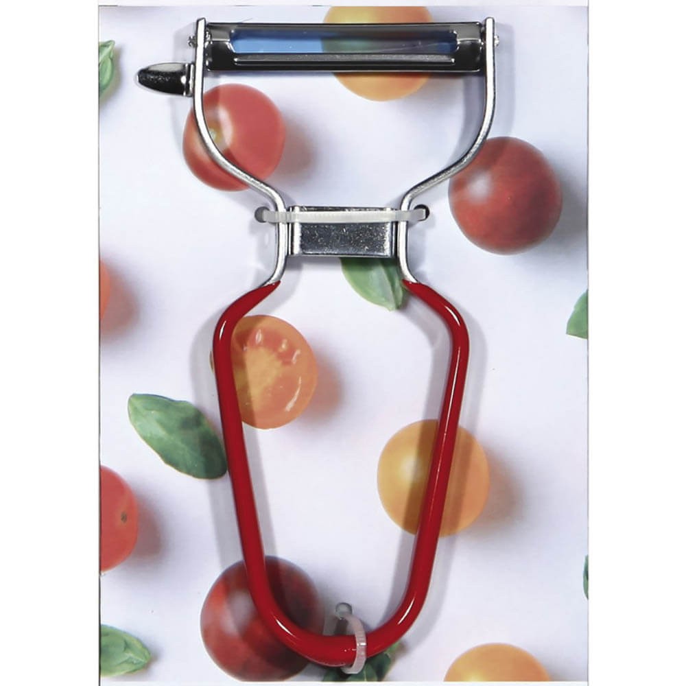 Pelador de cocina con cuchilla extralisa fabricado en acero inoxidable con mango engomado para un agarre cómodo y seguro, muy práctico para pelar fruta y verdura de forma adecuada, sin desperdicios innecesarios y optimizando tiempos. La hoja esta realizada en acero templado para un rendimiento de larga duración.