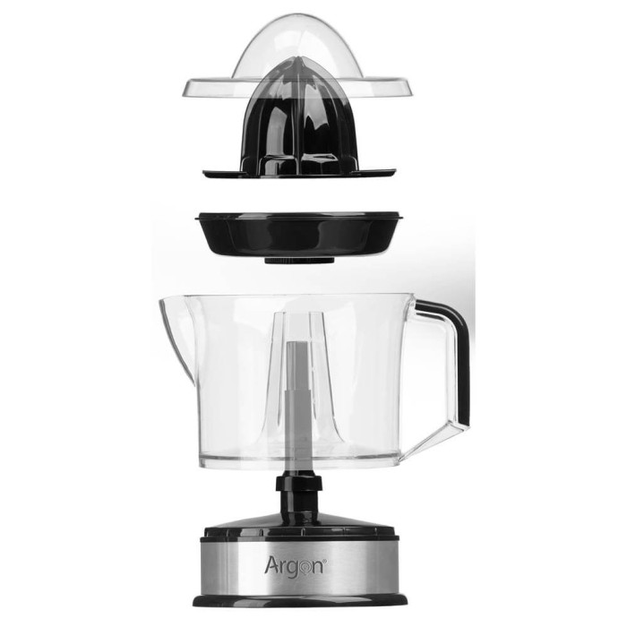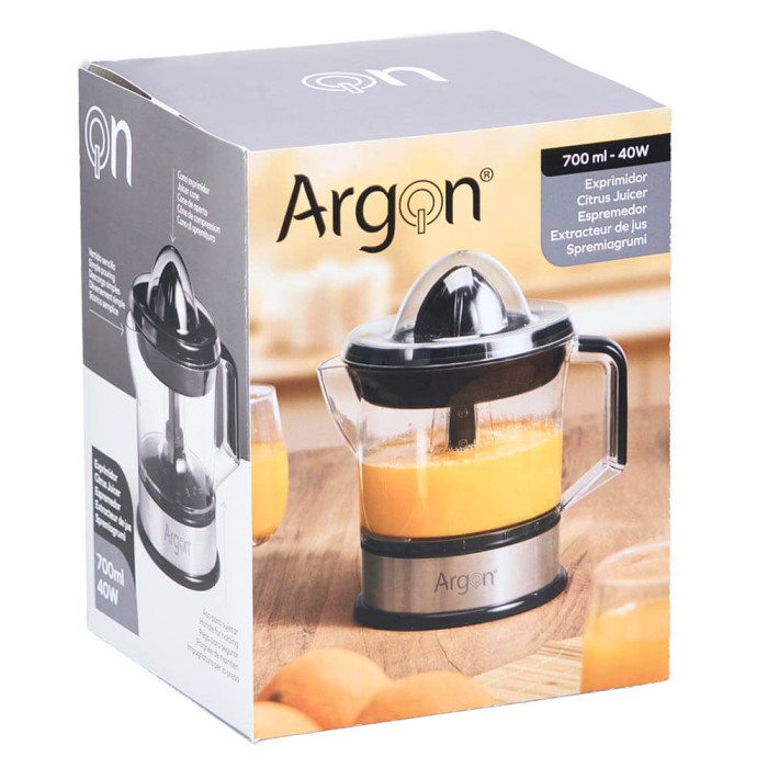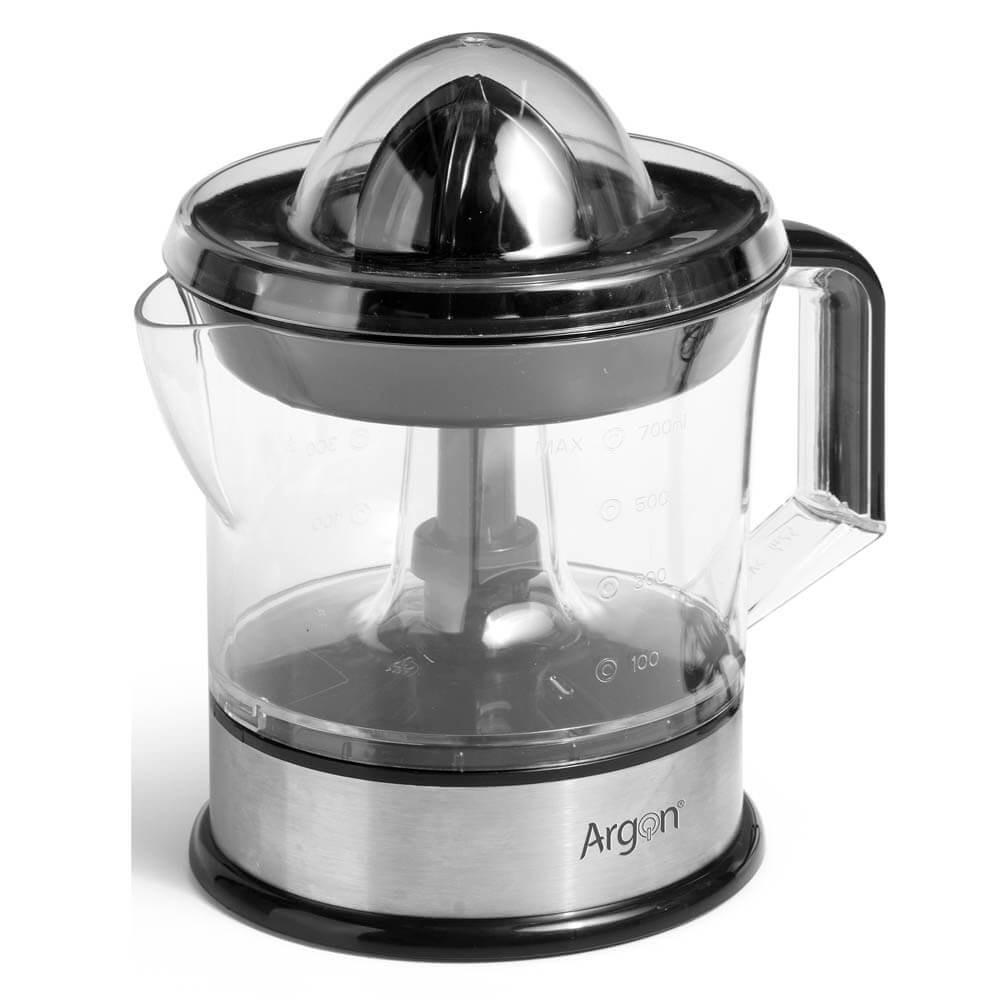 Exprimidor eléctrico de 40W con jarra transparente de 700ml, asa y pico vertedor. Diseño en acero y plástico PP. Ideal para zumos de cítricos. 14 x 19 x 20,5 cm.