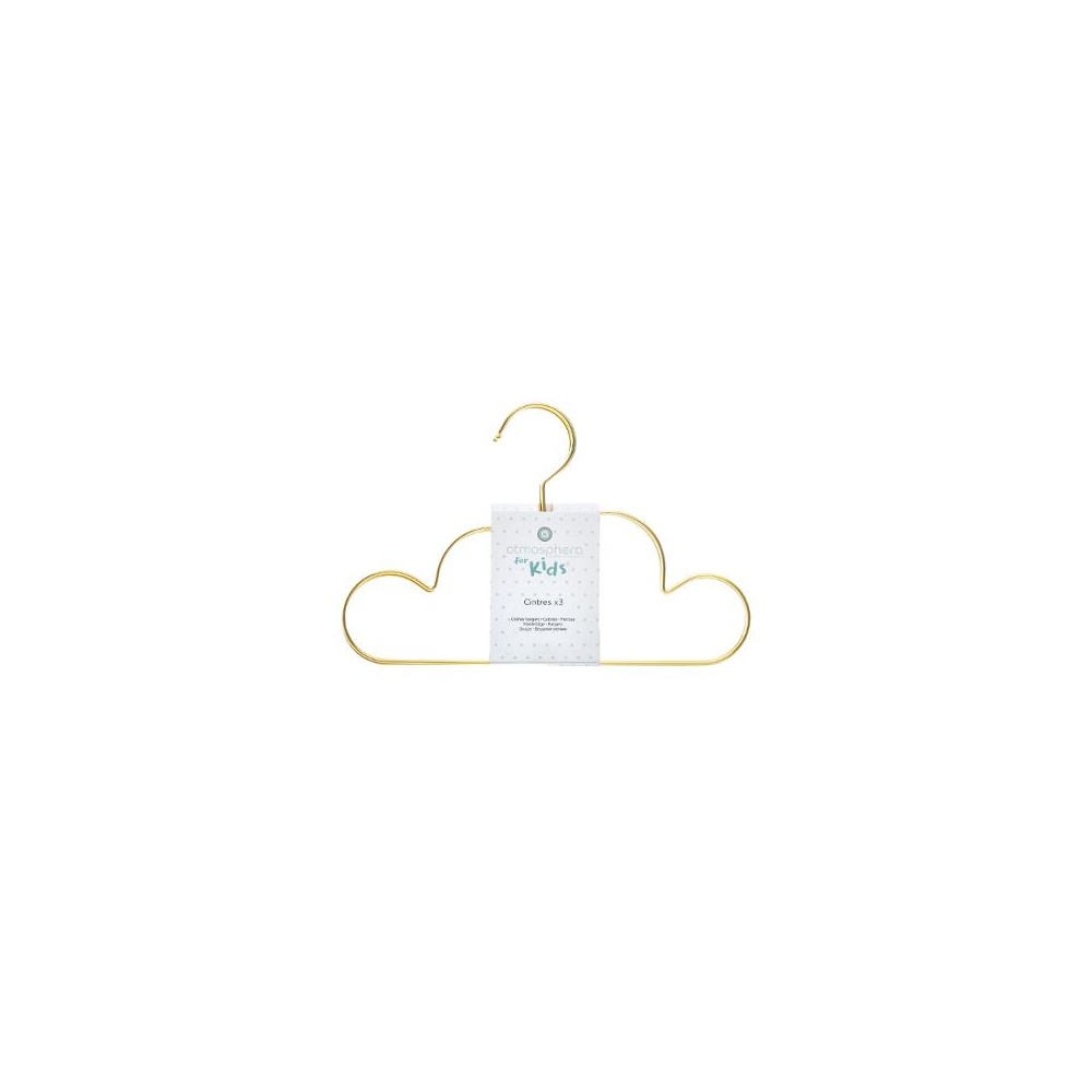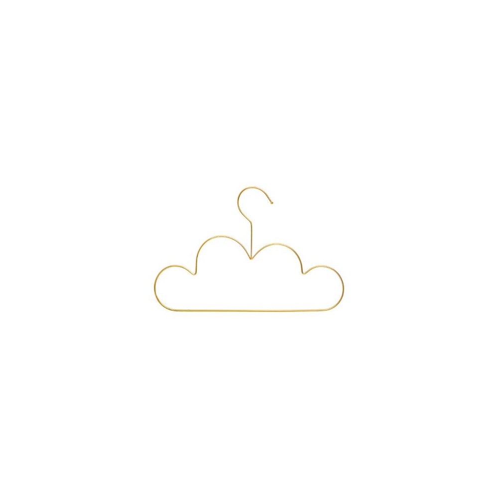 Perchas originales realizadas en metal con forma de nube, disponibles en color dorado. Estas perchas nube son perfectas para colgar prendas de tirantes, su forma evita que se resbalen y caigan en el fondo del armario.