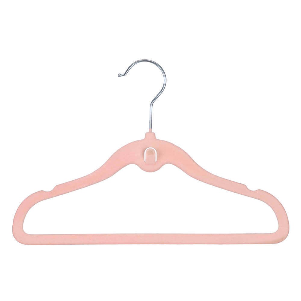 6 perchas infantiles aterciopeladas antideslizantes para que la ropa de tus hijos no acabe en el fondo del armario. Disponibles en rosa, beige y gris. Orden y estilo para el armario de los niños.