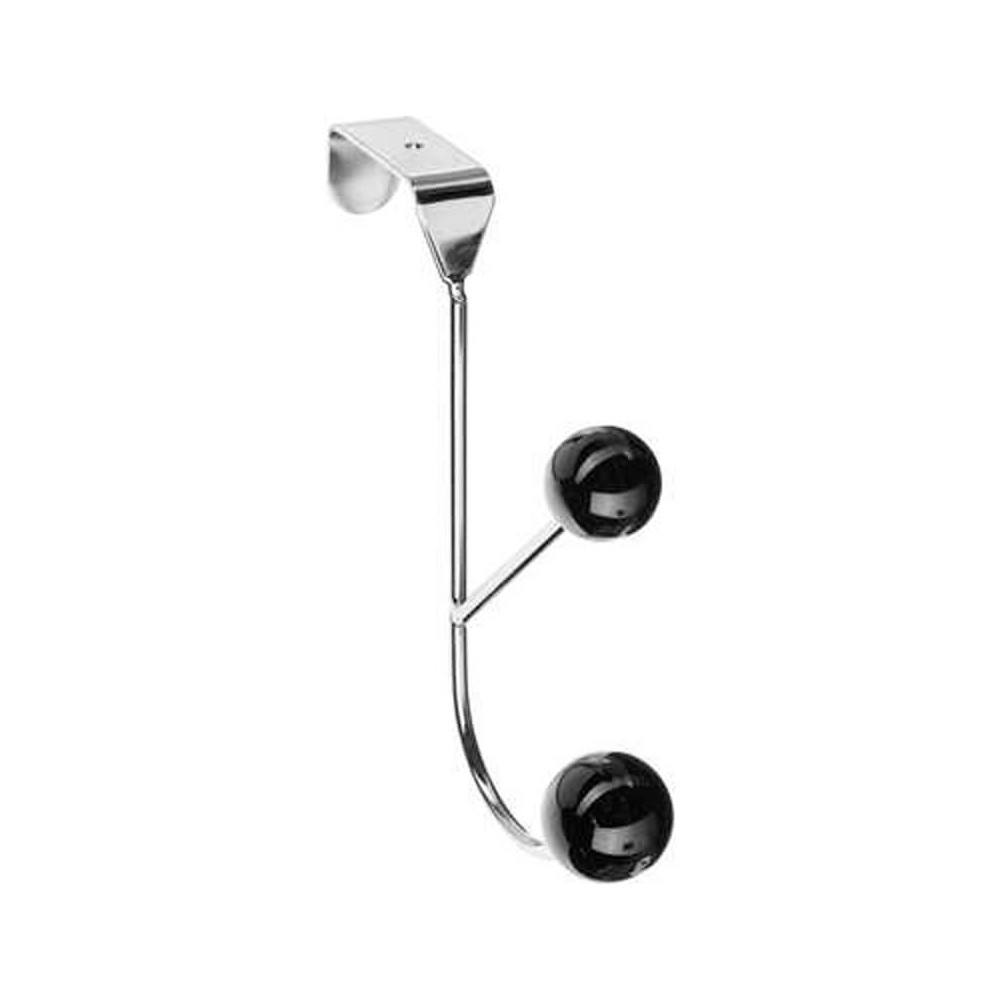 Perchero para la puerta individual realizado en hierro cromado con dos colgadores de cerámica tipo bola en color negro.