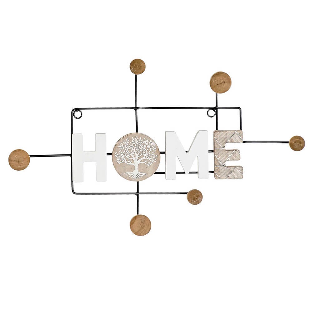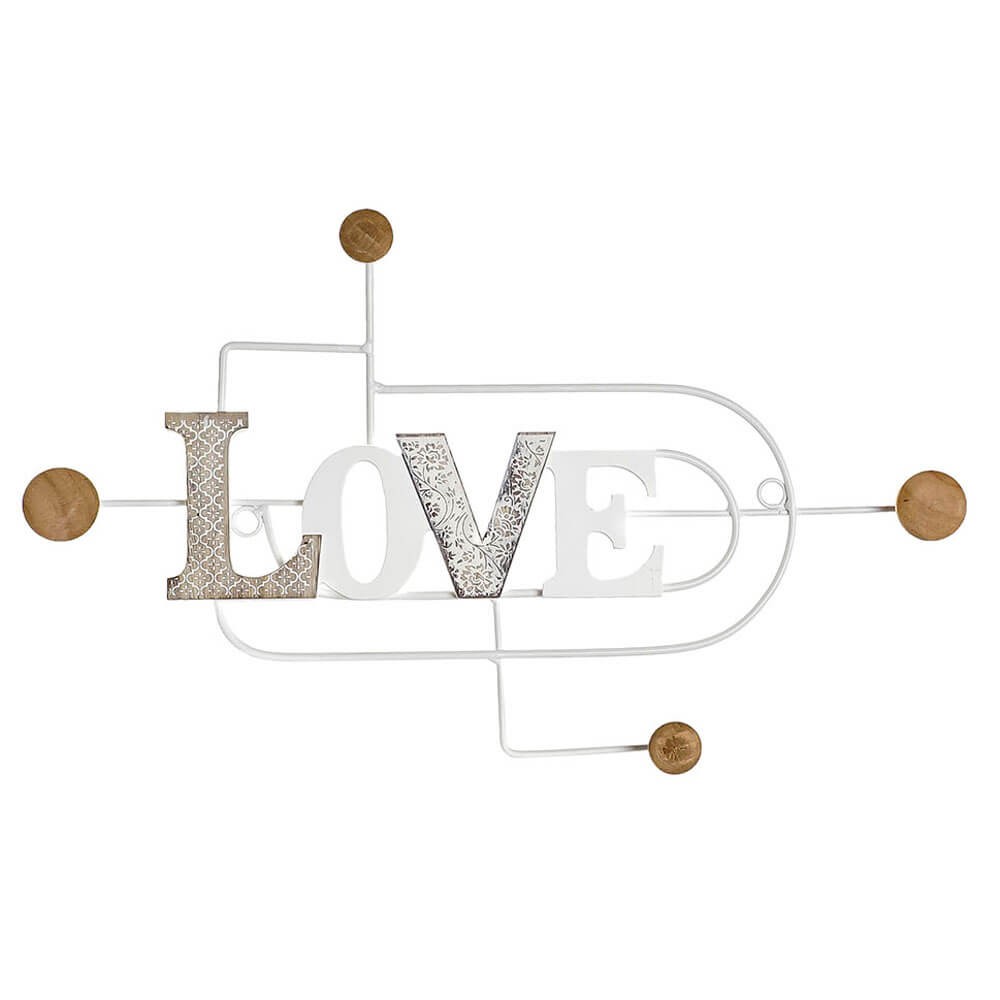 El perchero tiene un diseño original de estilo Boho realizado en metal con colgadores en forma de pomo en madera MDF, disponible en blanco con la palabra LOVE y 4 colgadores o en negro con la palabra HOME y 6 colgadores. Lleva dos argollas para que puedas colgarlo fácilmente en la pared.