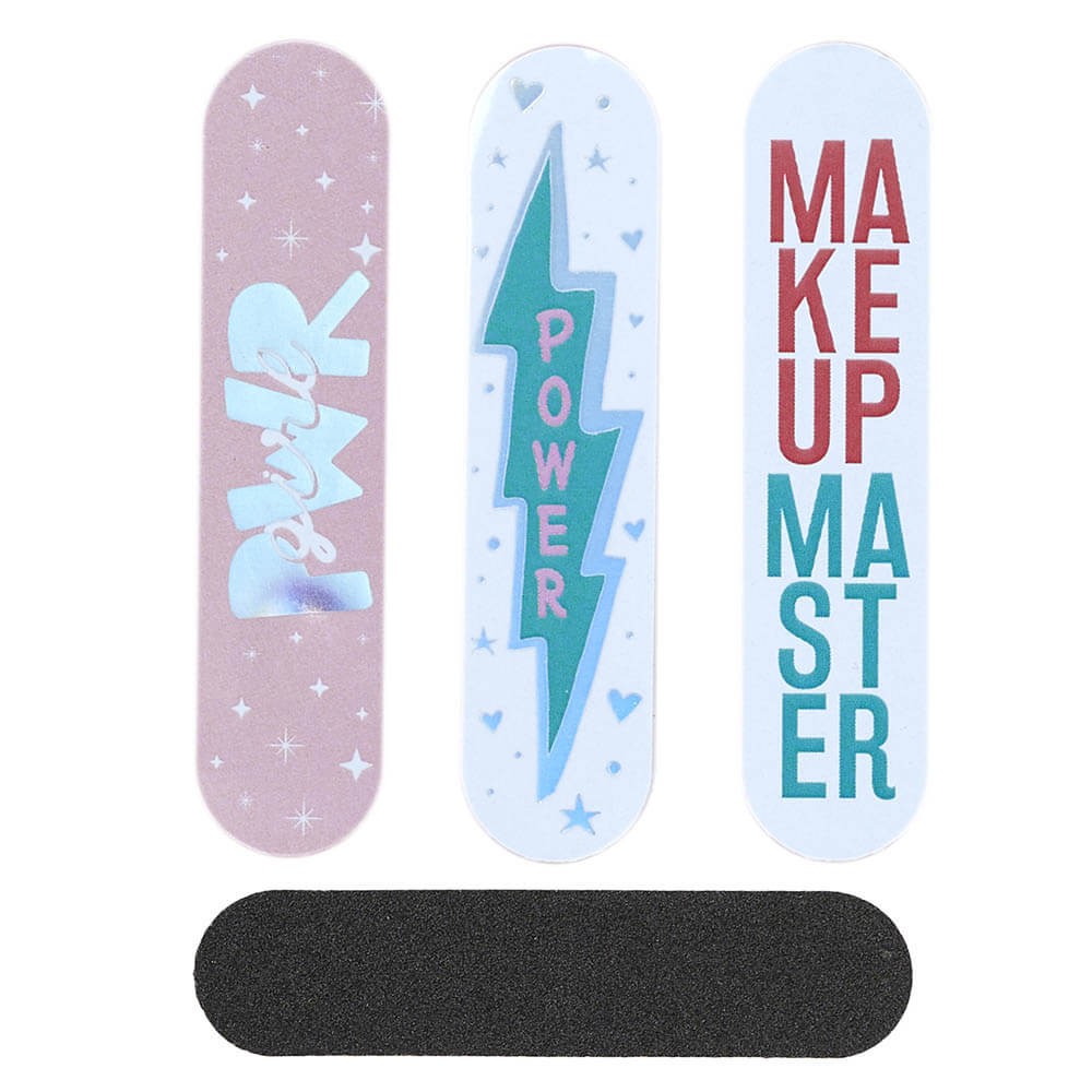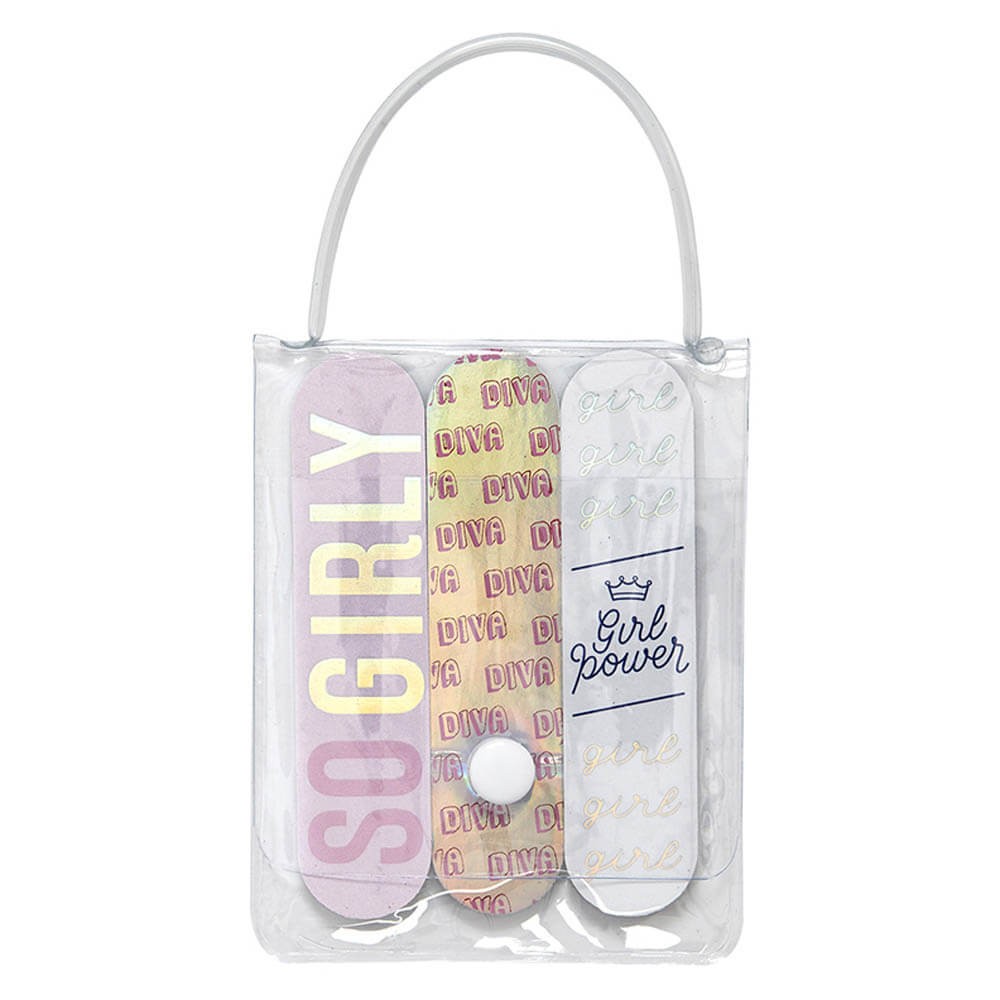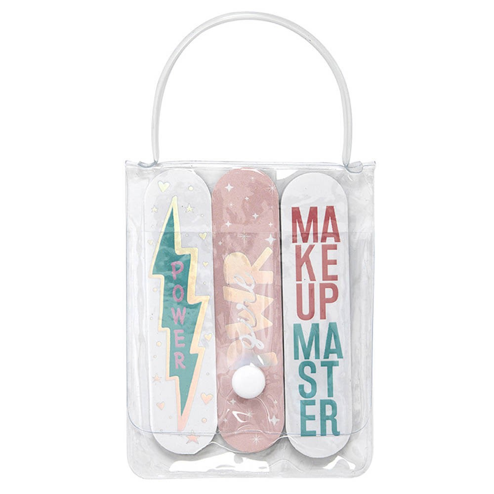 Bolsa de PVC con 3 mini limas de uñas decoradas, diseño So girly o Make up.