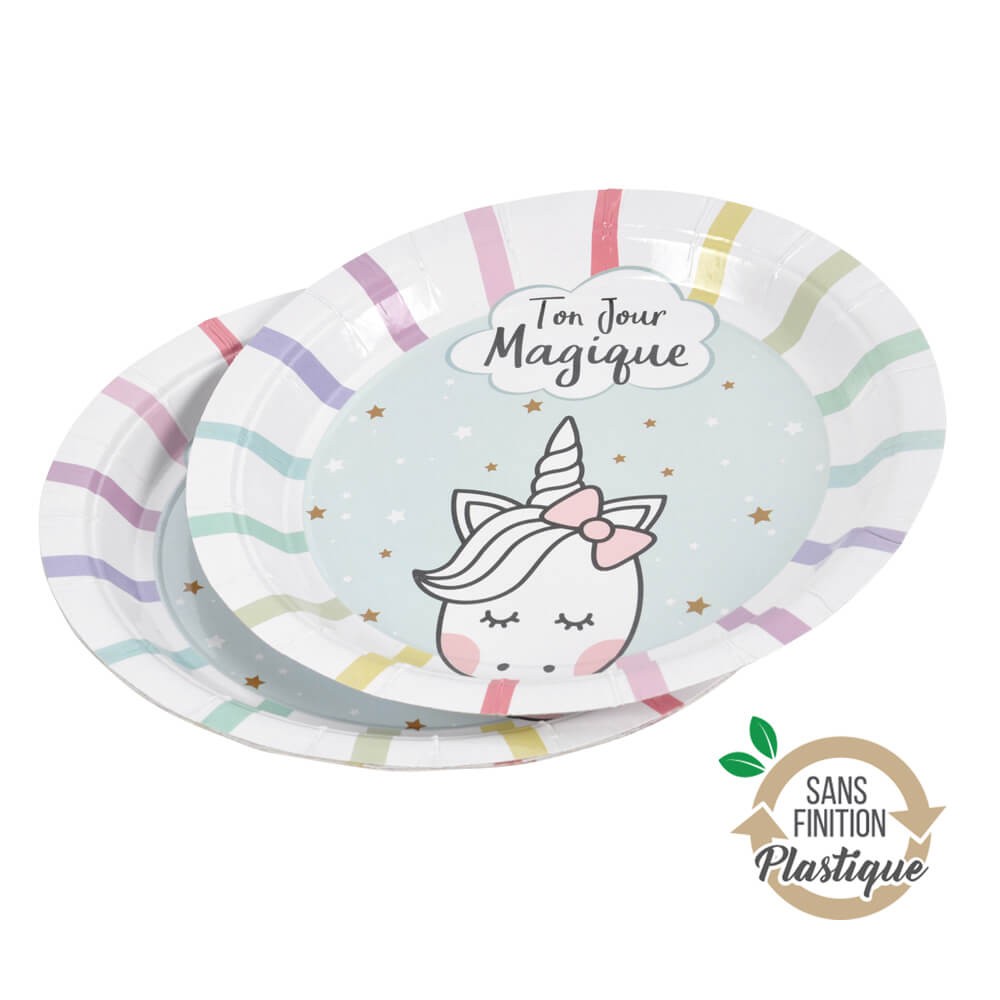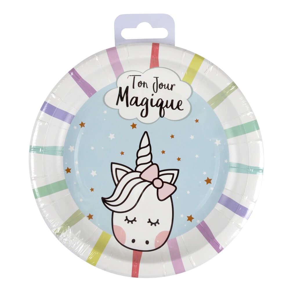 Estos platos de cartón son perfectos para cumpleaños infantiles, su diseño es ideal para montar mesas en fiestas temáticas de unicornio aportando un toque mágico a la decoración de la mesa.