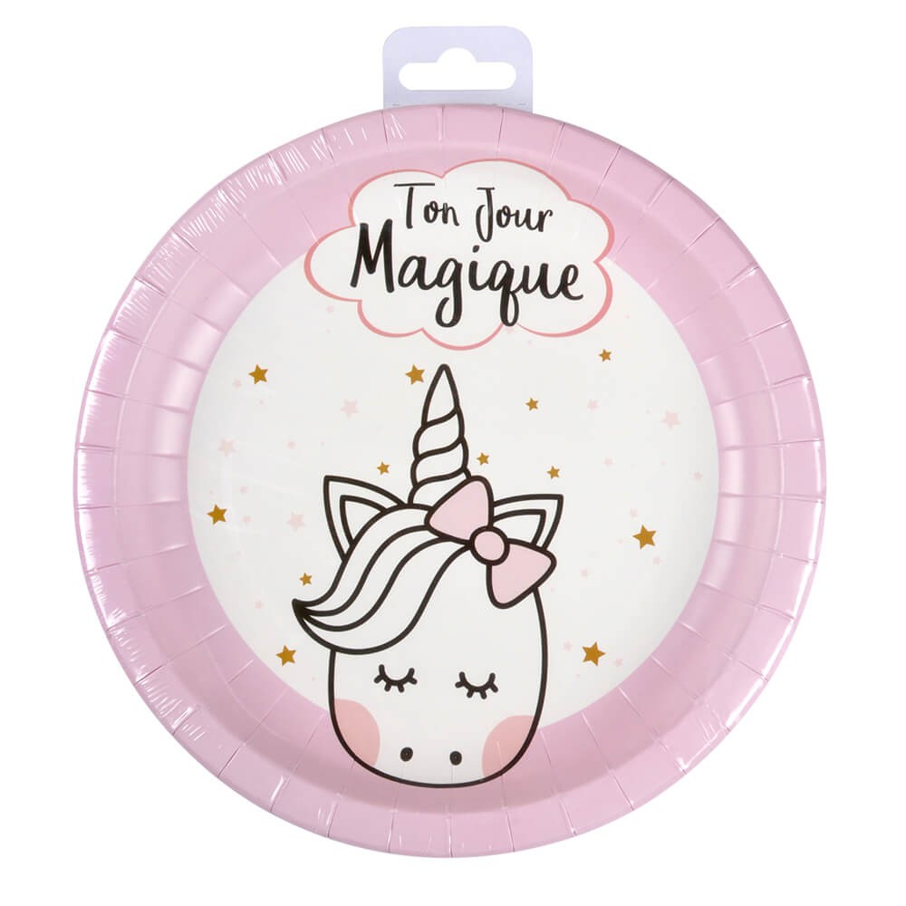 6 Platos de cartón de 23cm de diámetro diseño unicornio, perfectos para fiestas infantiles.