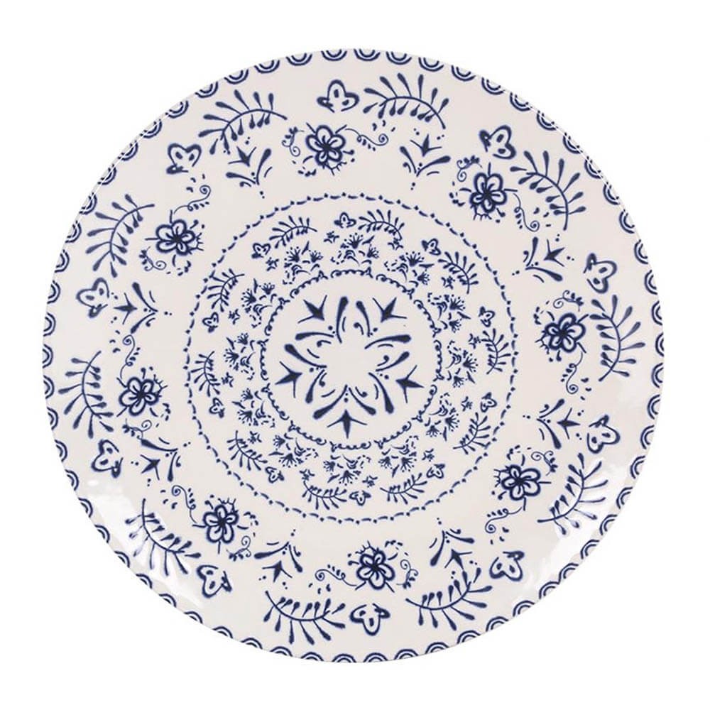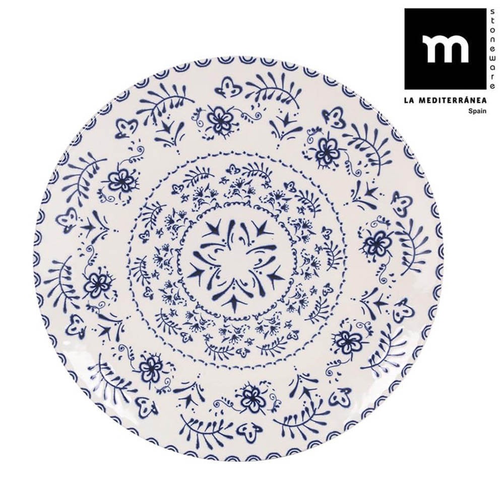 Plato de postre realizado en cerámica decorada de 20 cm de diámetro con un maravilloso diseño floral en color azul en el interior, pertenece a la colección Mónaco de la marca La Mediterranea, perfecto para completar una maravillosa y original vajilla con el resto de piezas de la colección.