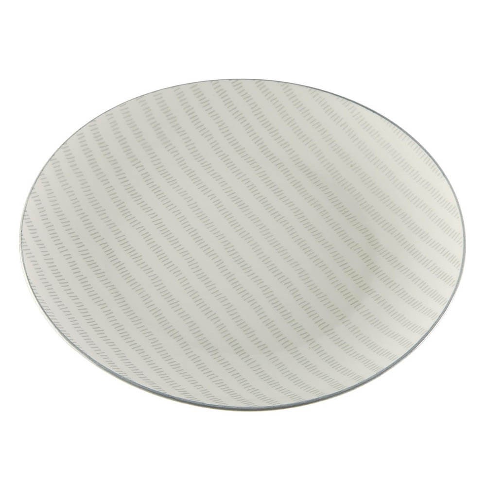 El plato de 26,5 cm de diámetro esta realizado en porcelana con un bonito diseño en tendencia de inspiración oriental, lleva la superficie decorada con líneas sutiles y el filo gris, puedes coordinarlo con el resto de piezas de la colección, plato de postre y plato hondo para conseguir un acabado sofisticado o combinarlo con otros diseños y colores para conseguir una decoración de mesa original e impactante.