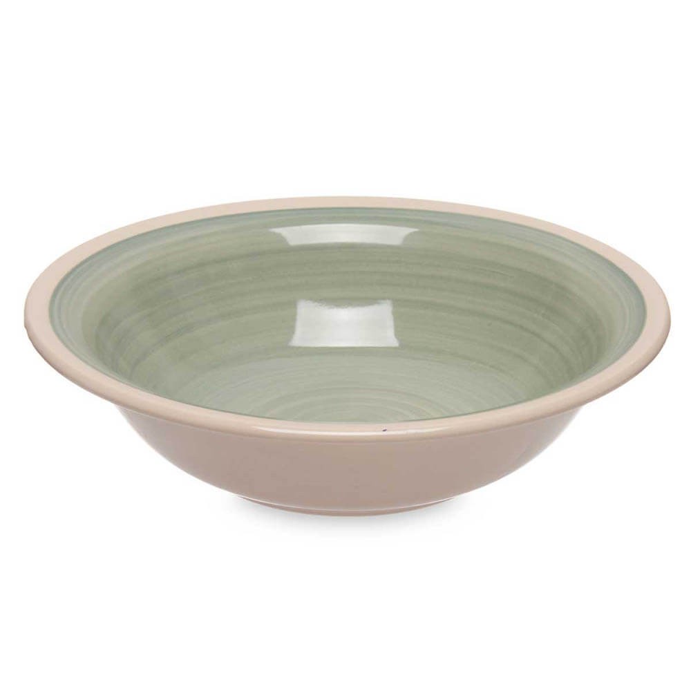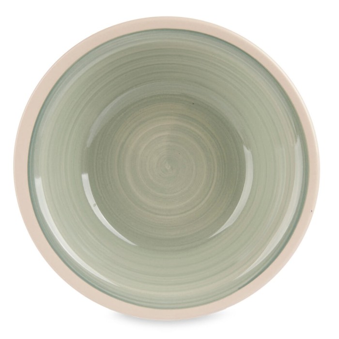 Conjunto de 6 platos hondos de cerámica de 21 cm. Superficie pintada en color verde y diseño rústico, perfectos para servir tus cremas y sopas favoritas.