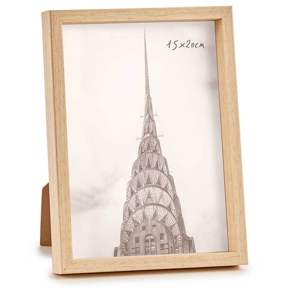 Marco de fotos de líneas rectas para fotografía de 15x20 cm, fabricado en plástico acabado imitación madera en color natural.