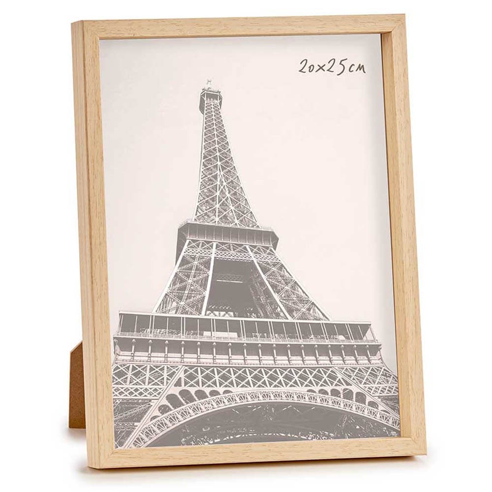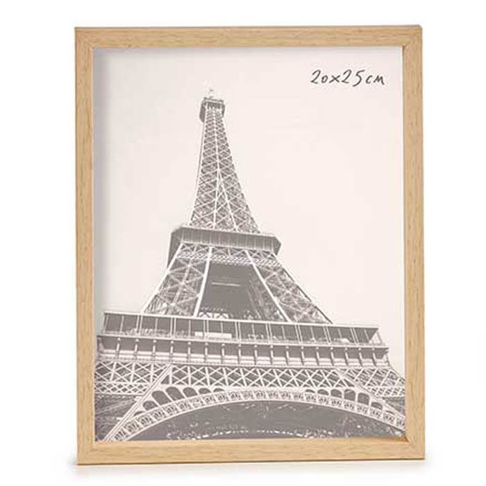 Marco de fotos de líneas rectas para fotografía de 20x25 cm, fabricado en plástico acabado imitación madera en color natural.