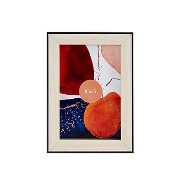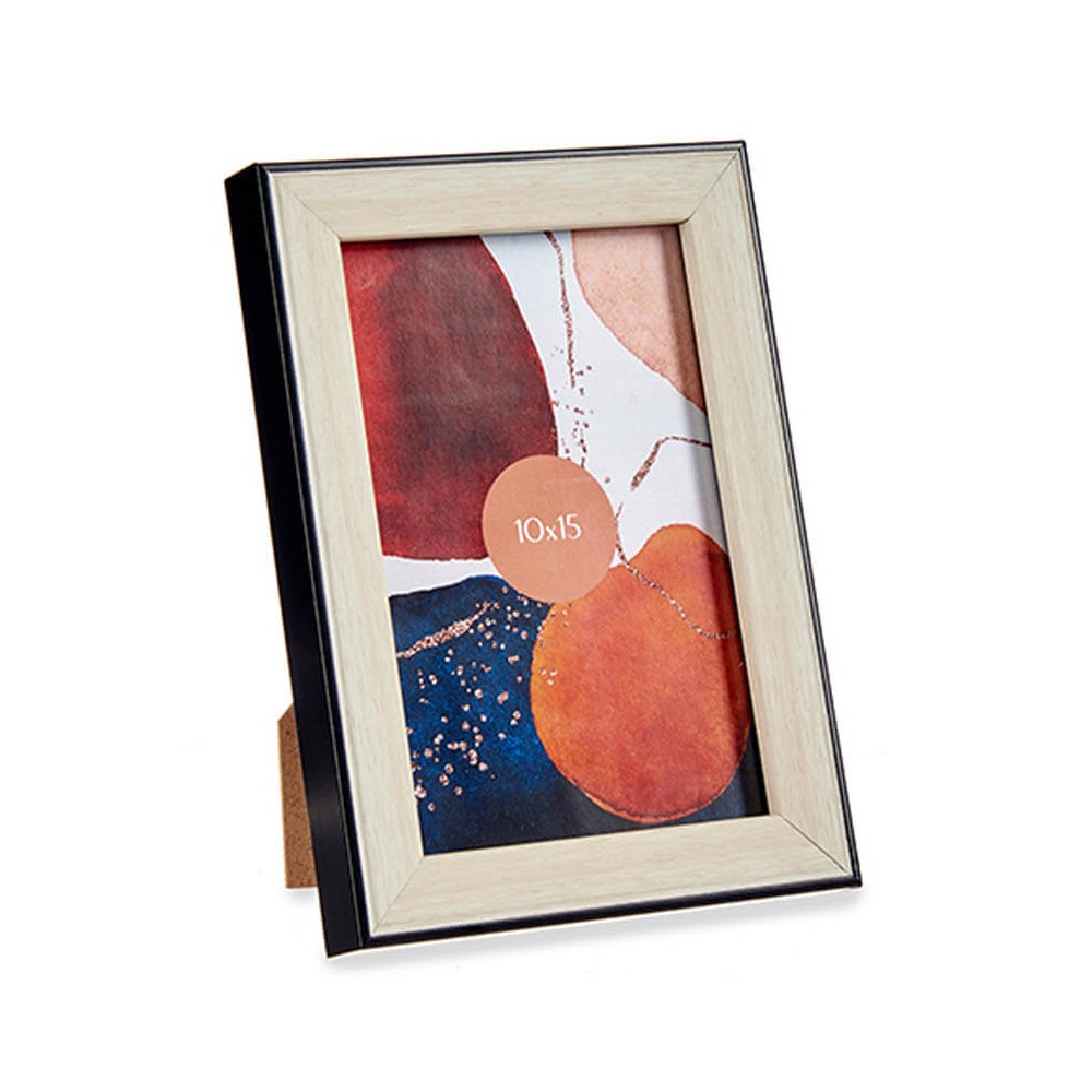 Marco de fotos de líneas rectas para fotografía de 10x15cm cm, fabricado en plástico acabado imitación madera en color natural con el perfil negro.