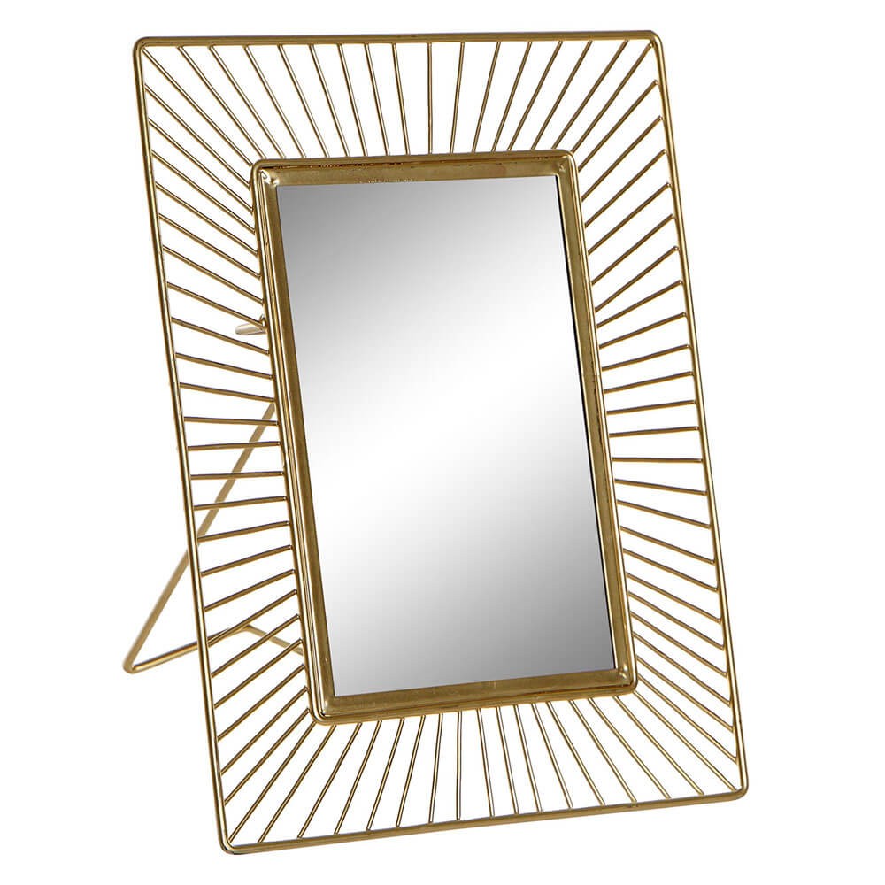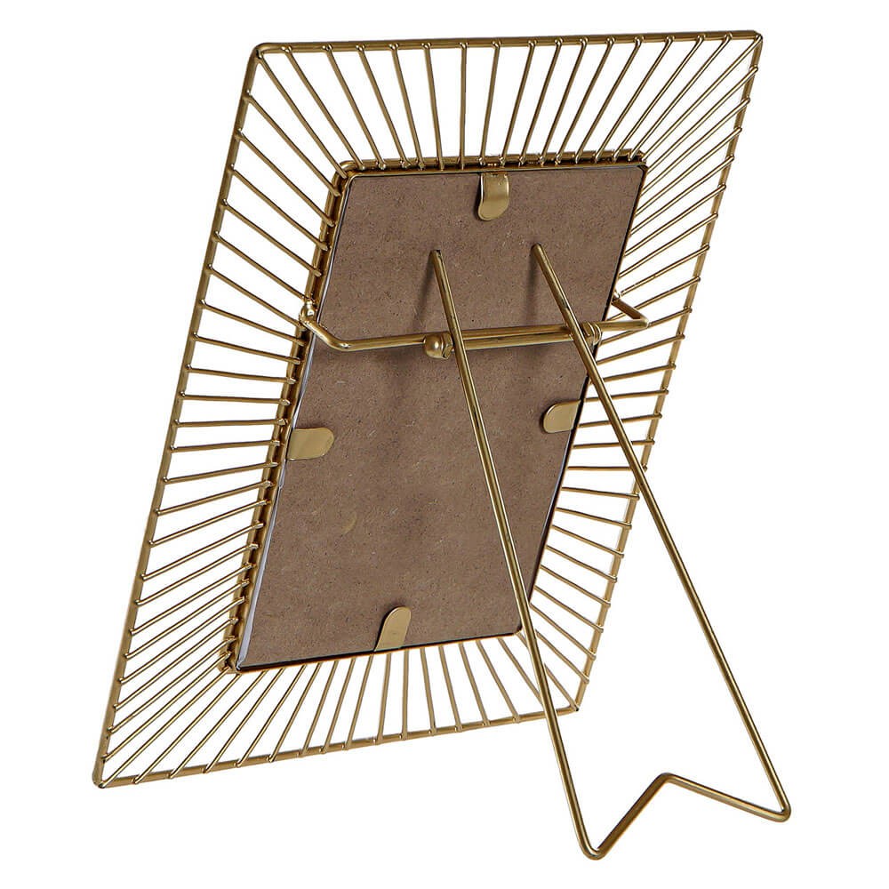 Marco de fotos 10x15 cm de estilo moderno fabricado en hierro de color dorado.