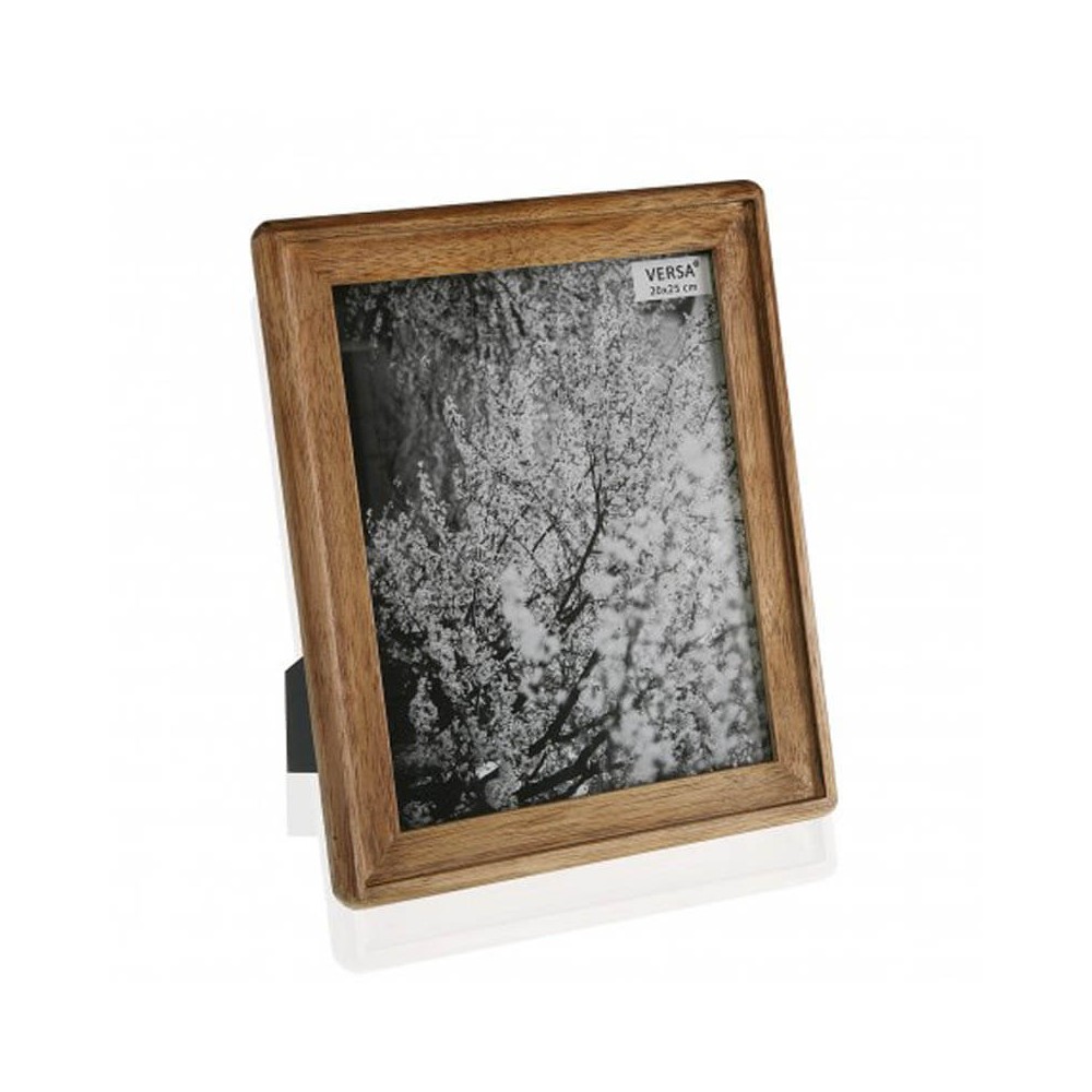 Marco de fotos para fotografía de 20x25 cm fabricado en madera de mango en color marrón con el borde ligeramente elevado.